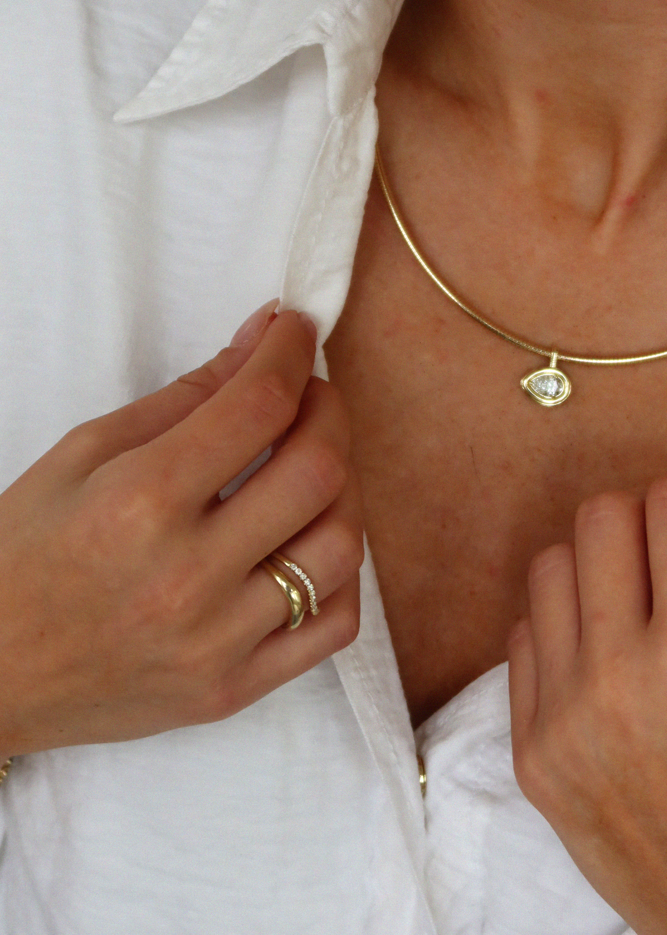 Sleek and modern, our Lana curved ring in 14k solid gold features an elegant, slightly domed curve. A sculptural piece that’s designed to frame a statement stone or stack with other curved rings for wavy texture.