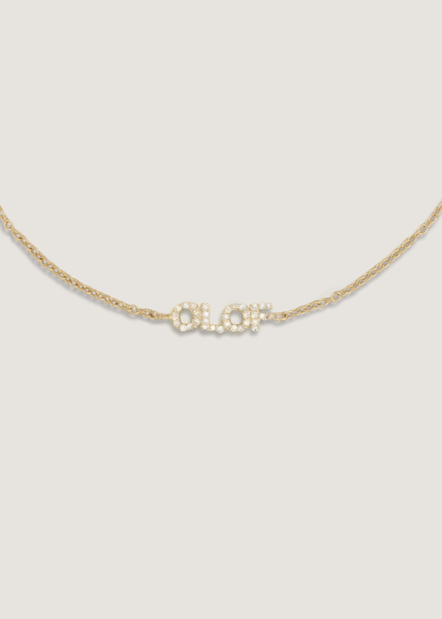 Adorned with pavé diamonds, this refined nameplate bracelet adds a touch of sophistication to your collection. Customize it with your name, a meaningful word, or a loved one’s initials for a truly personal piece.