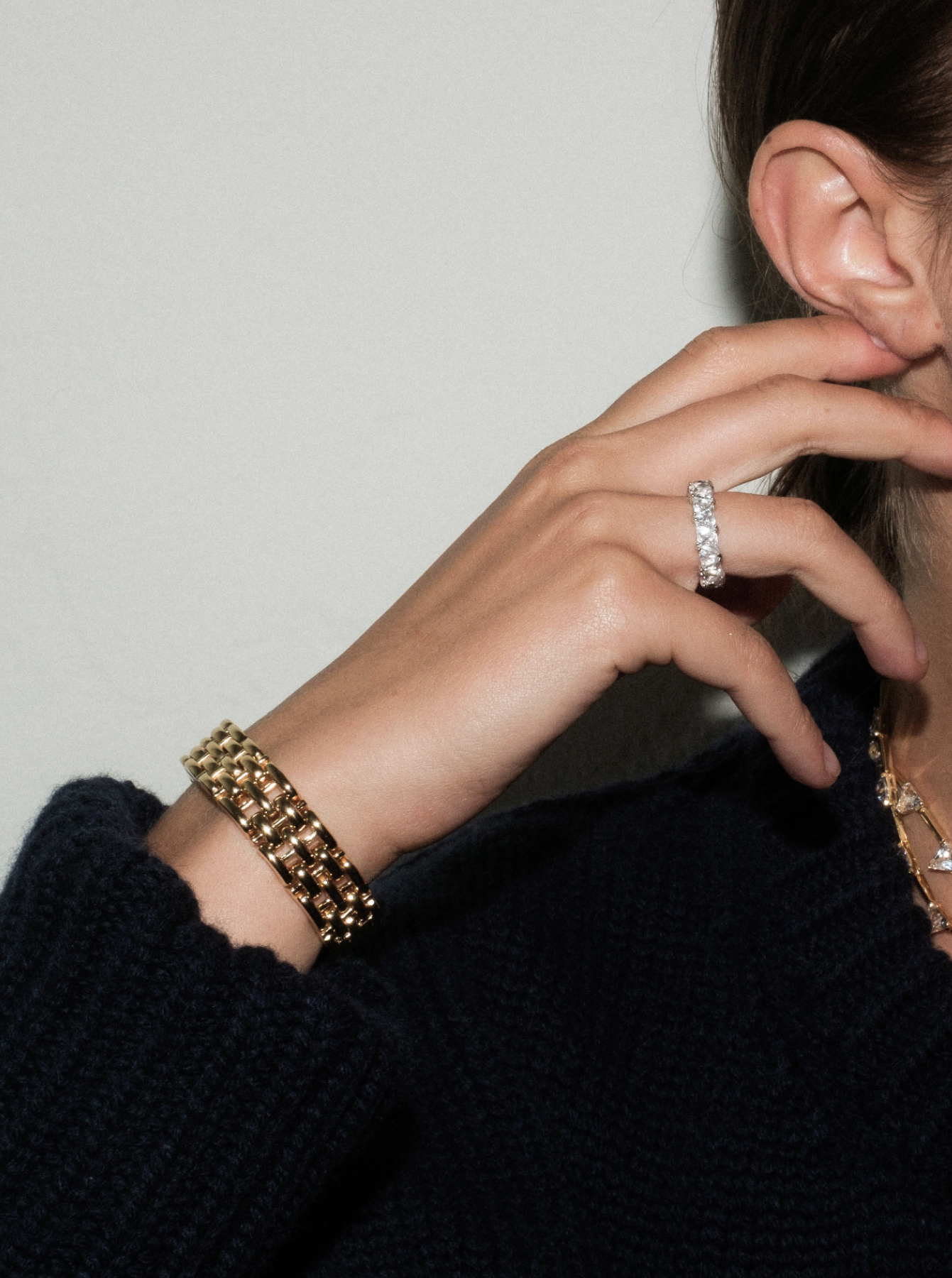 Leonora is the north star of gold bracelets. She is inspired by the sexy, gold links of the 1970’s, and makes serious moves on the wrist. Layer her with our Dorsey bracelet for a touch of shine, or wear alone for a major statement making moment.