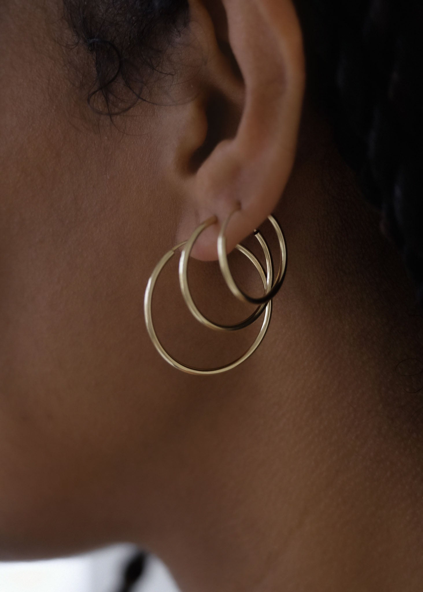 Part of your 24/7 look, wear our Lightweight Hoops with your favorite pair of Levi's and a white tee or with a floral dress to the winery. These little gems are light as a feather, so even the big ones won't weigh you down.