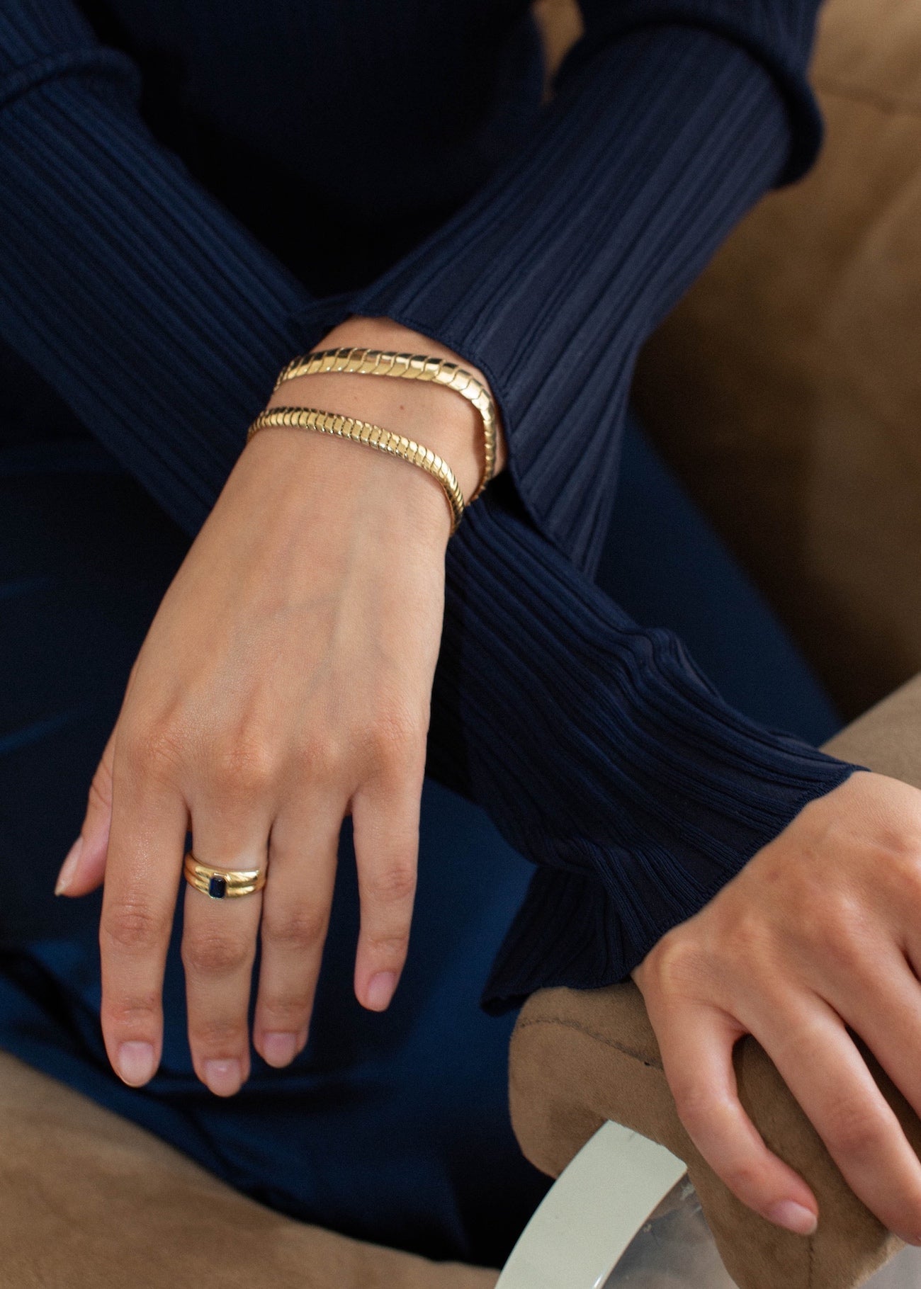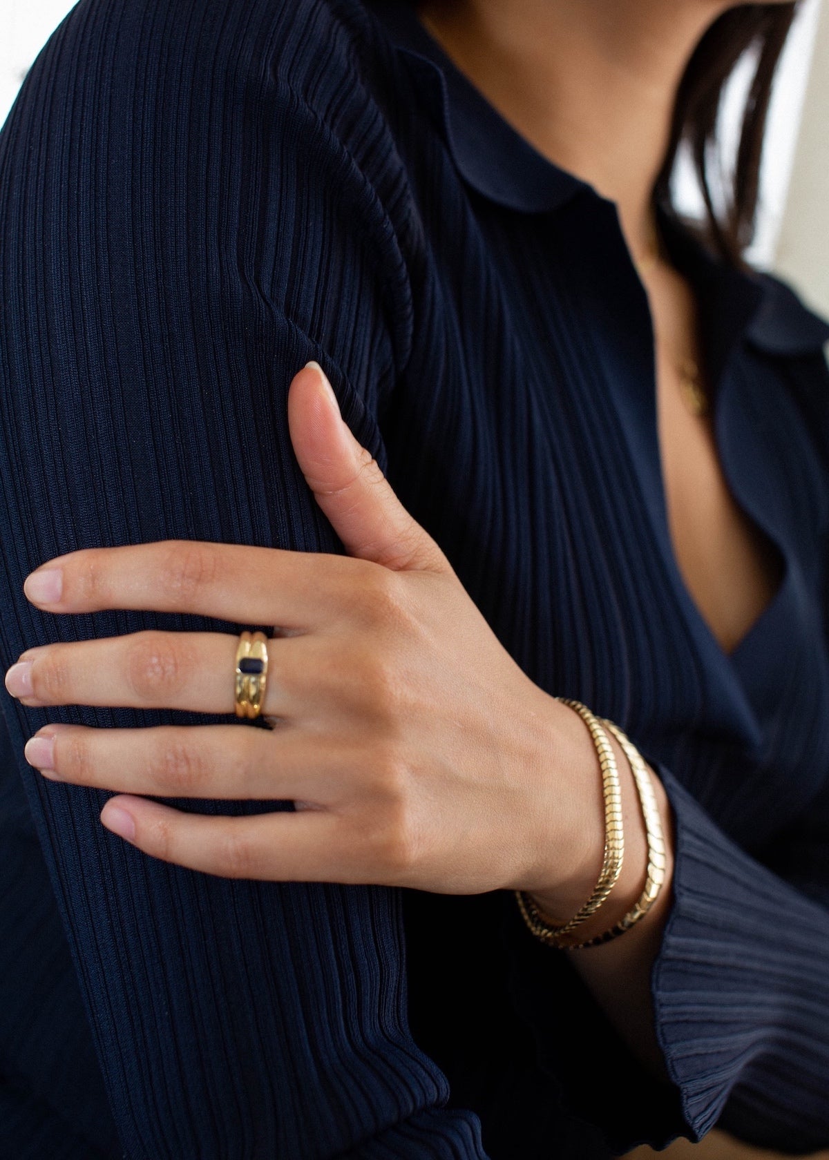We took one of your favorite rings, the Françoise Stacked Ellipse Ring I, and added a gemstone to give more texture and character.