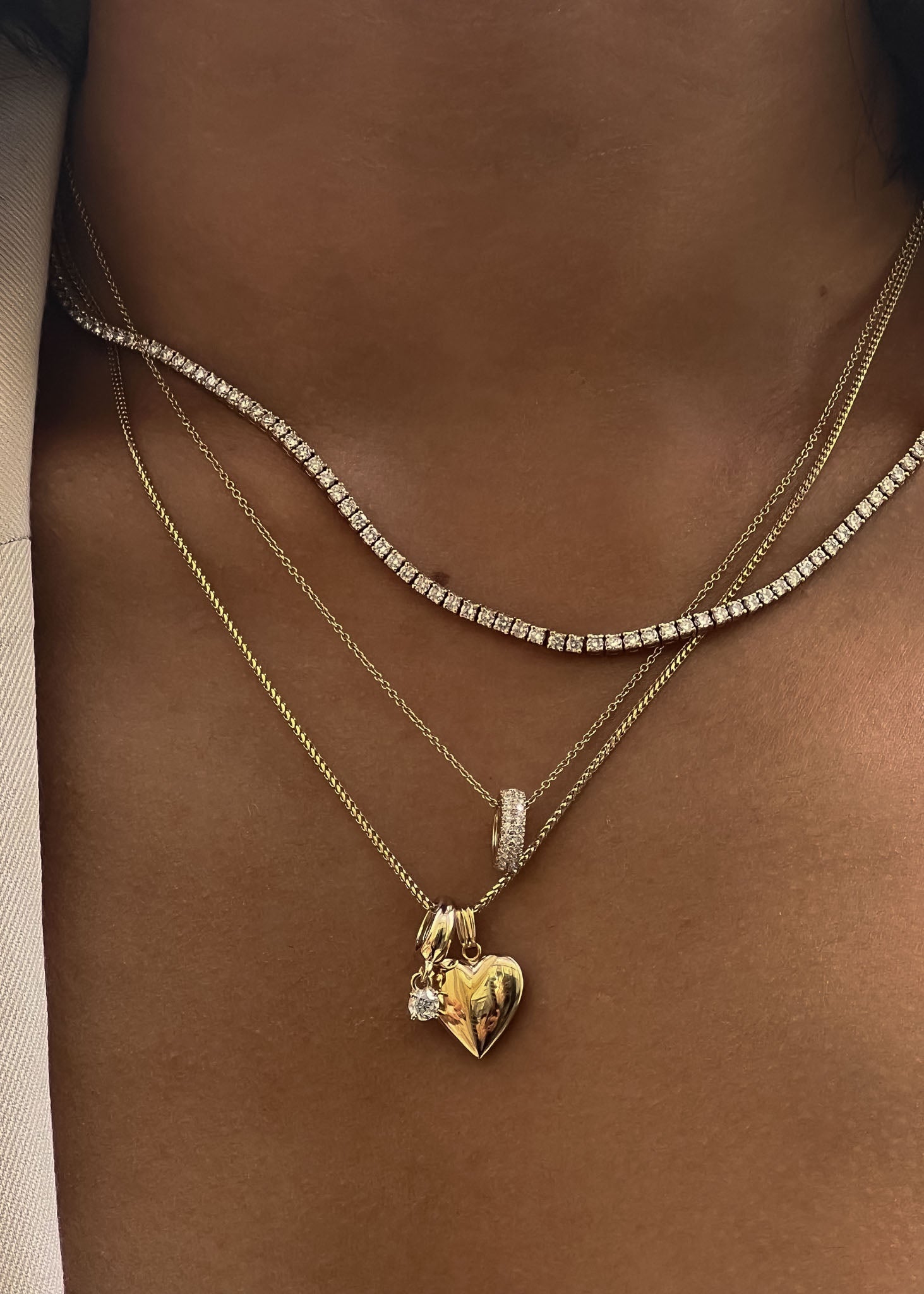 Includes one Maison Heart Locket Necklace and one Milestone Drop Charm.