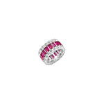 Made to order. The Maxime Three-Row Eternity Band features a central row of baguette-cut lab-grown rubies framed by two rows of round-cut stones in white moissanite, creating a triple-layer design that offers both structure and refined, fiery sparkle. Crafted in sterling silver.