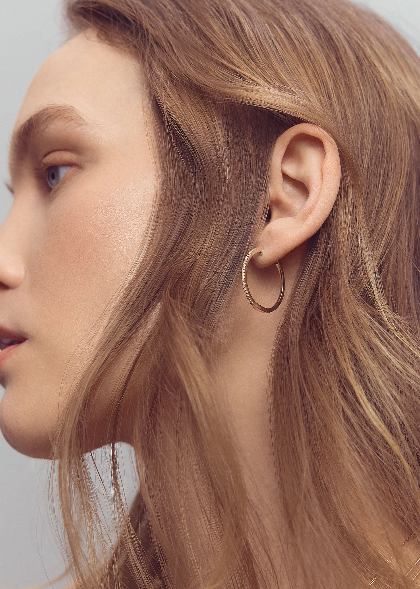 Classic hoops featuring natural pavé diamonds for added texture and elegance—wear alone or stack alongside huggies and studs.