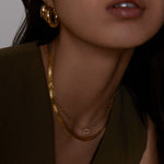 Timeless, yet contemporary, this unique pendant shape catches the eye without needing to say too much. Durable for every day wear—stack underneath a herringbone chain.