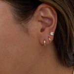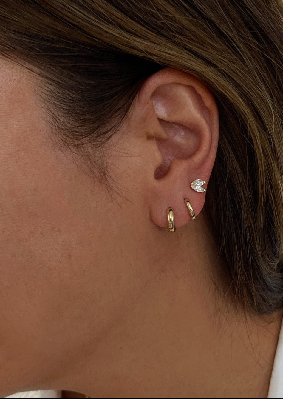Designed for your 24/7 look, this stack brings together two everyday essentials. The Petite Huggies are subtle and refined—perfect for effortless layering. Paired with the Classic Huggies, their bolder counterpart, this duo offers just the right balance of scale and shine. Wear them together, on repeat.
