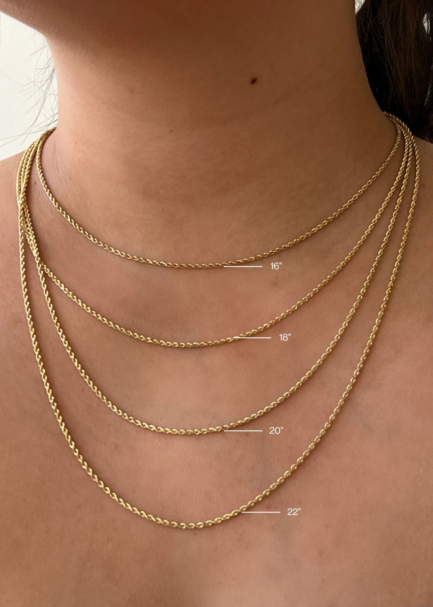 Rope chains are classic and timeless. Wear our solid 14k version for years to come.