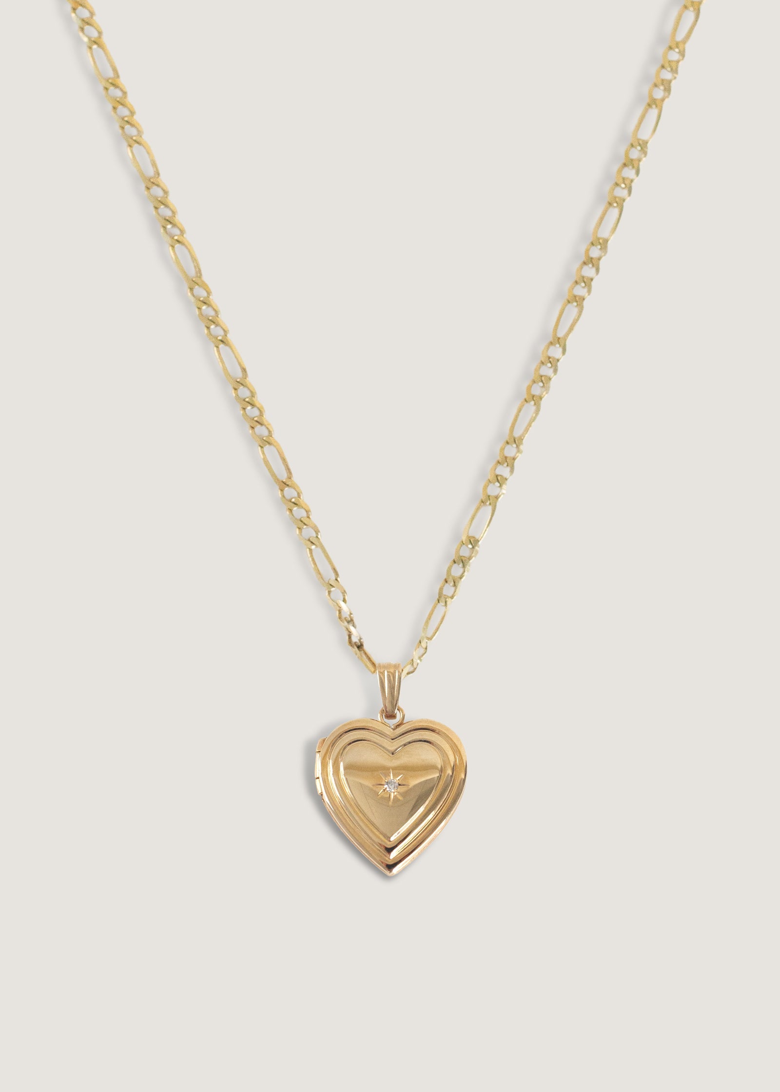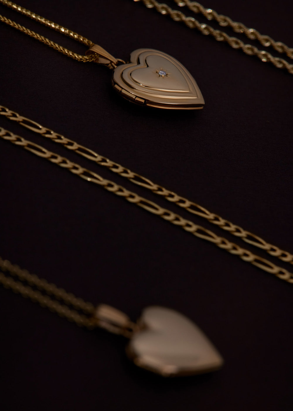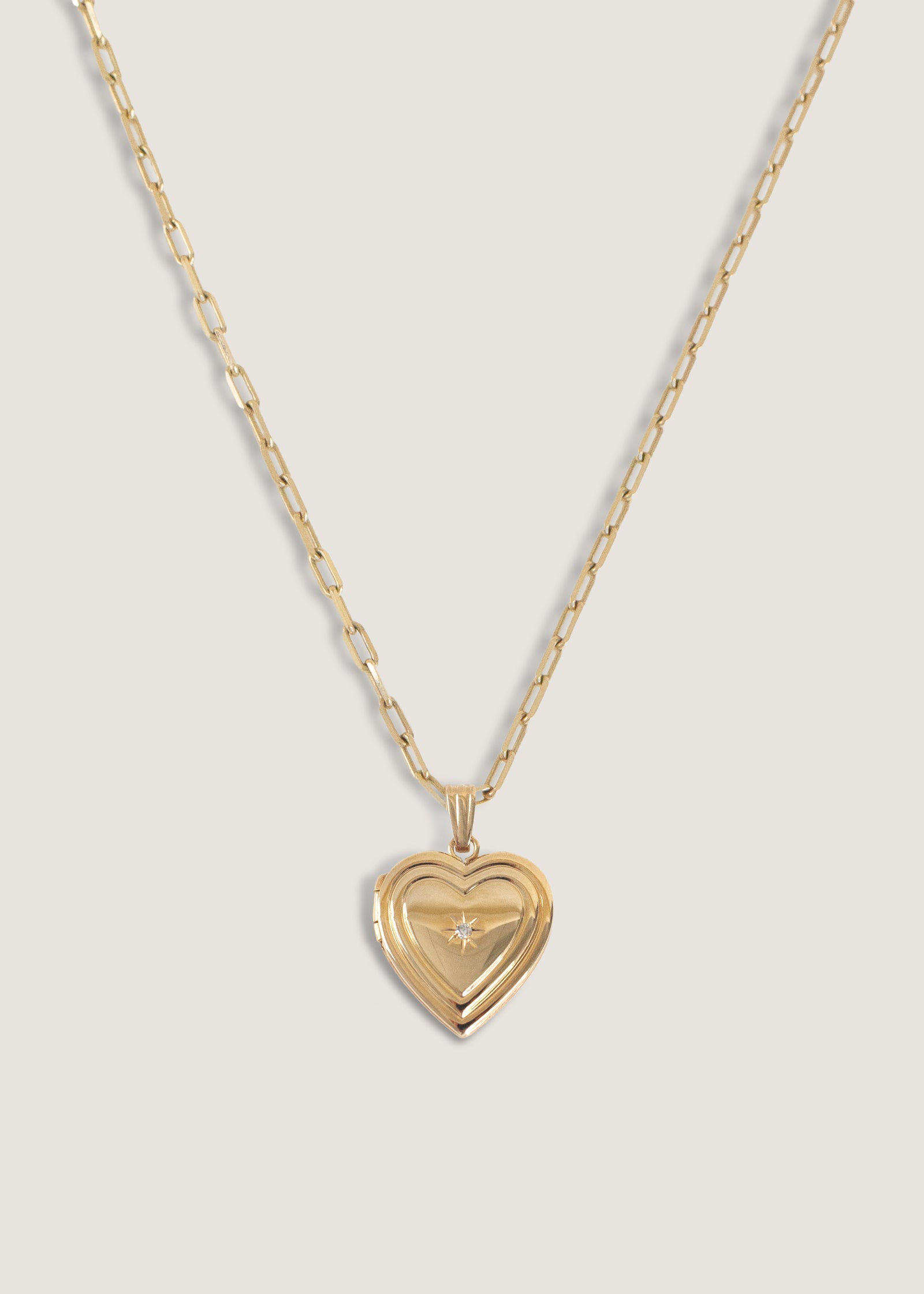 Kinn - Ribbed Maison Heart Locket Necklace Diamond