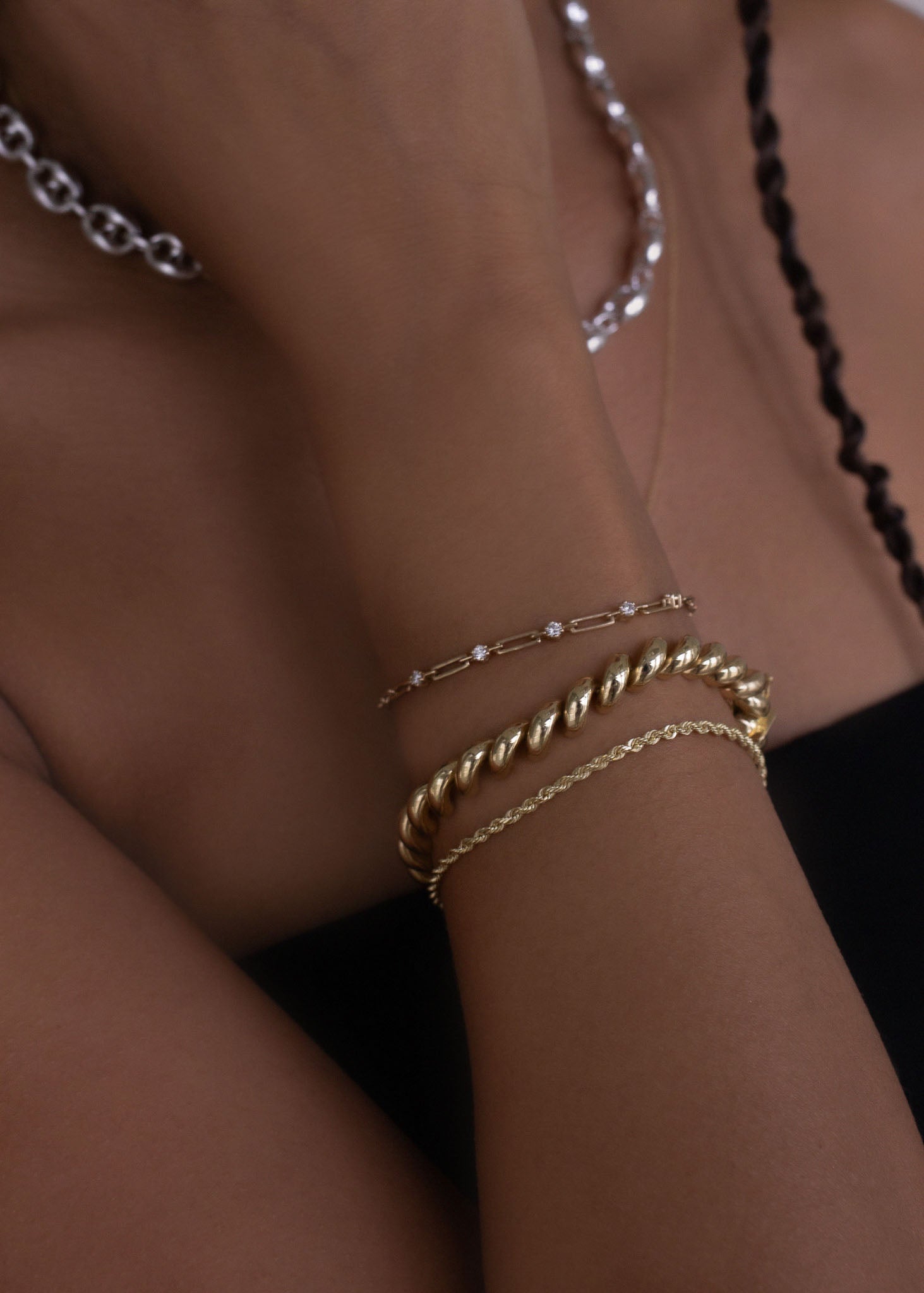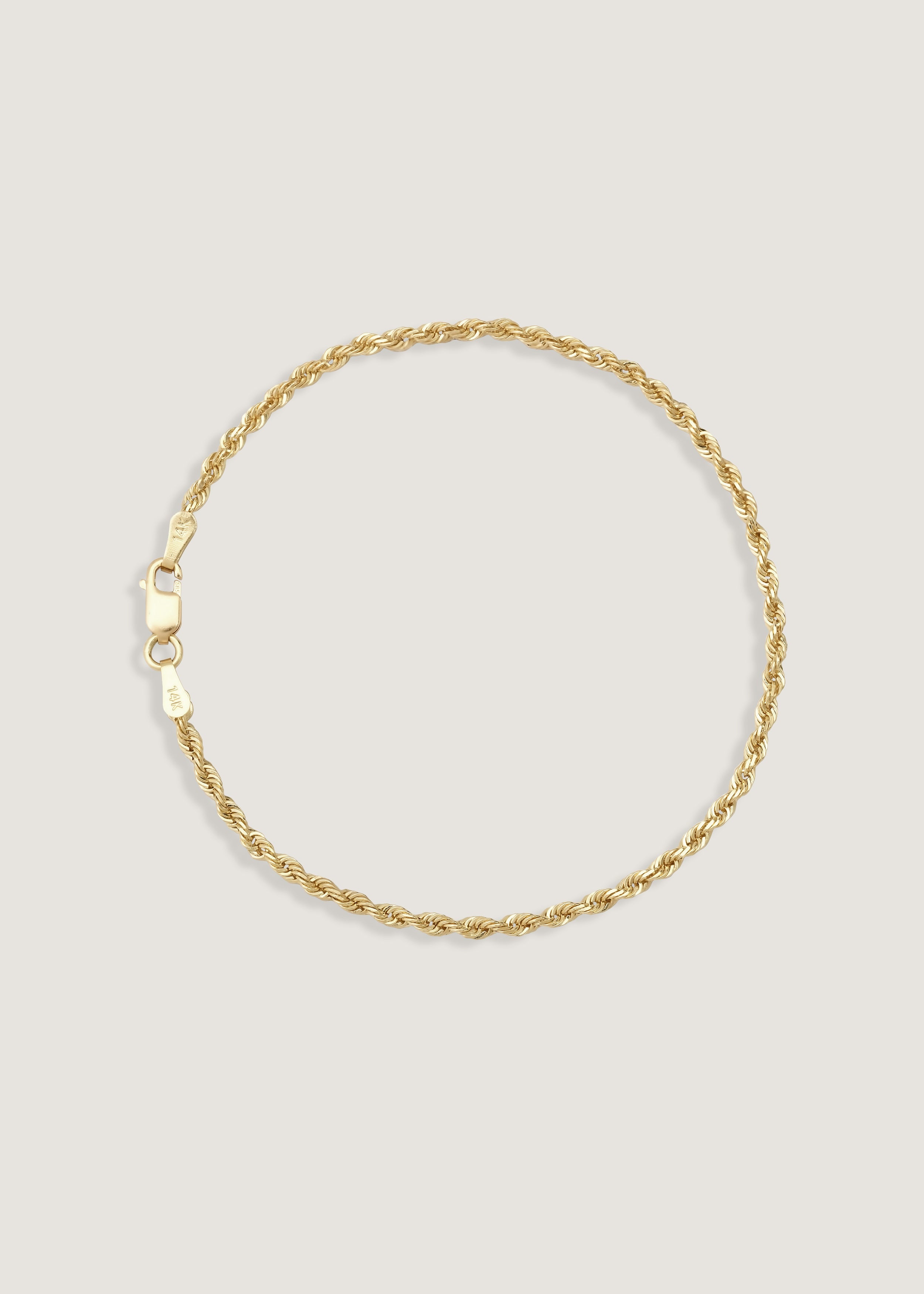 Crafted with 14k solid gold, this classic rope chain style adds to any bracelet stack.