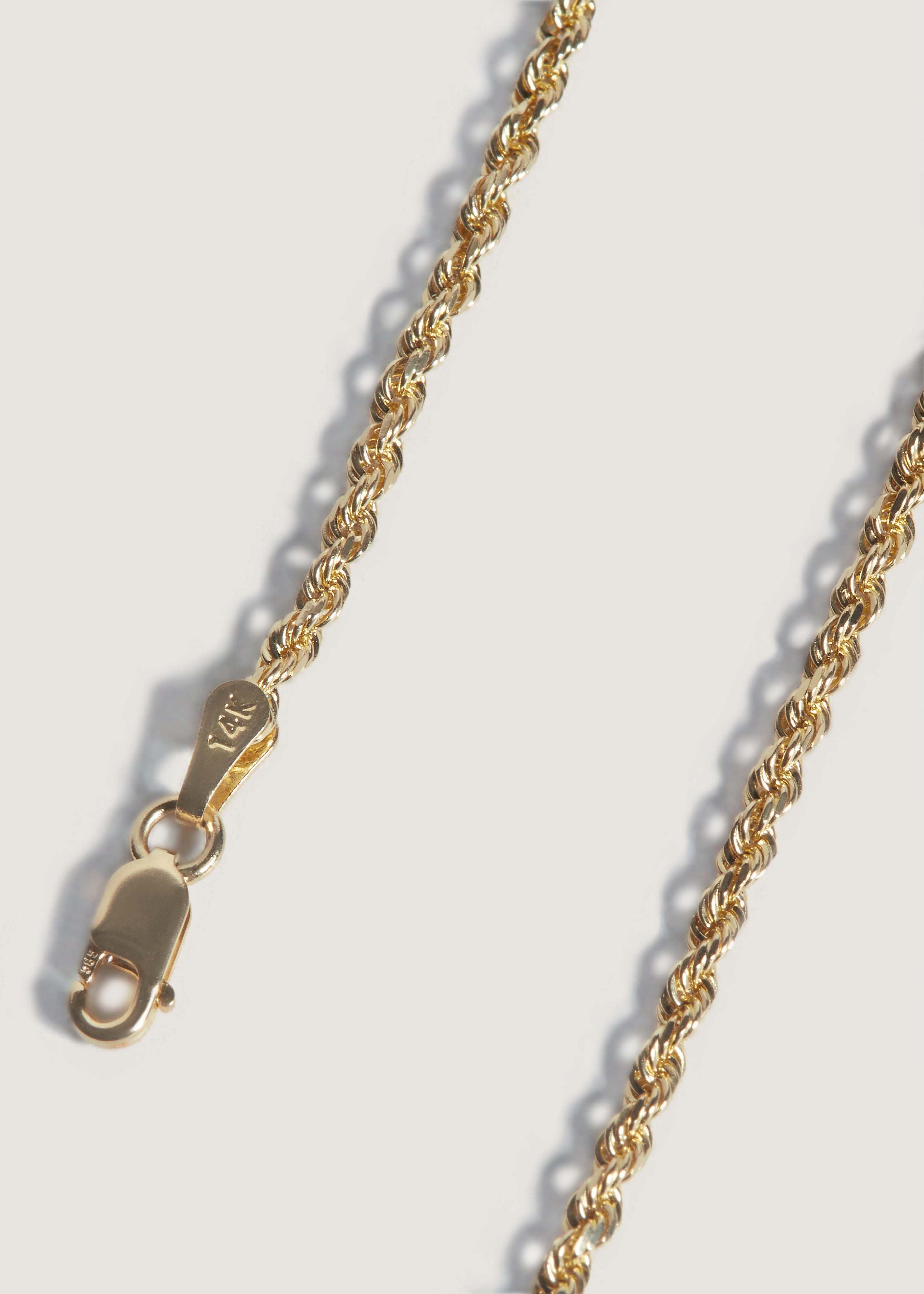 A rope chain is essential to your fine jewelry collection. Add boldness and texture to any necklace stack. Never take it off and pass this piece down for generations to come.