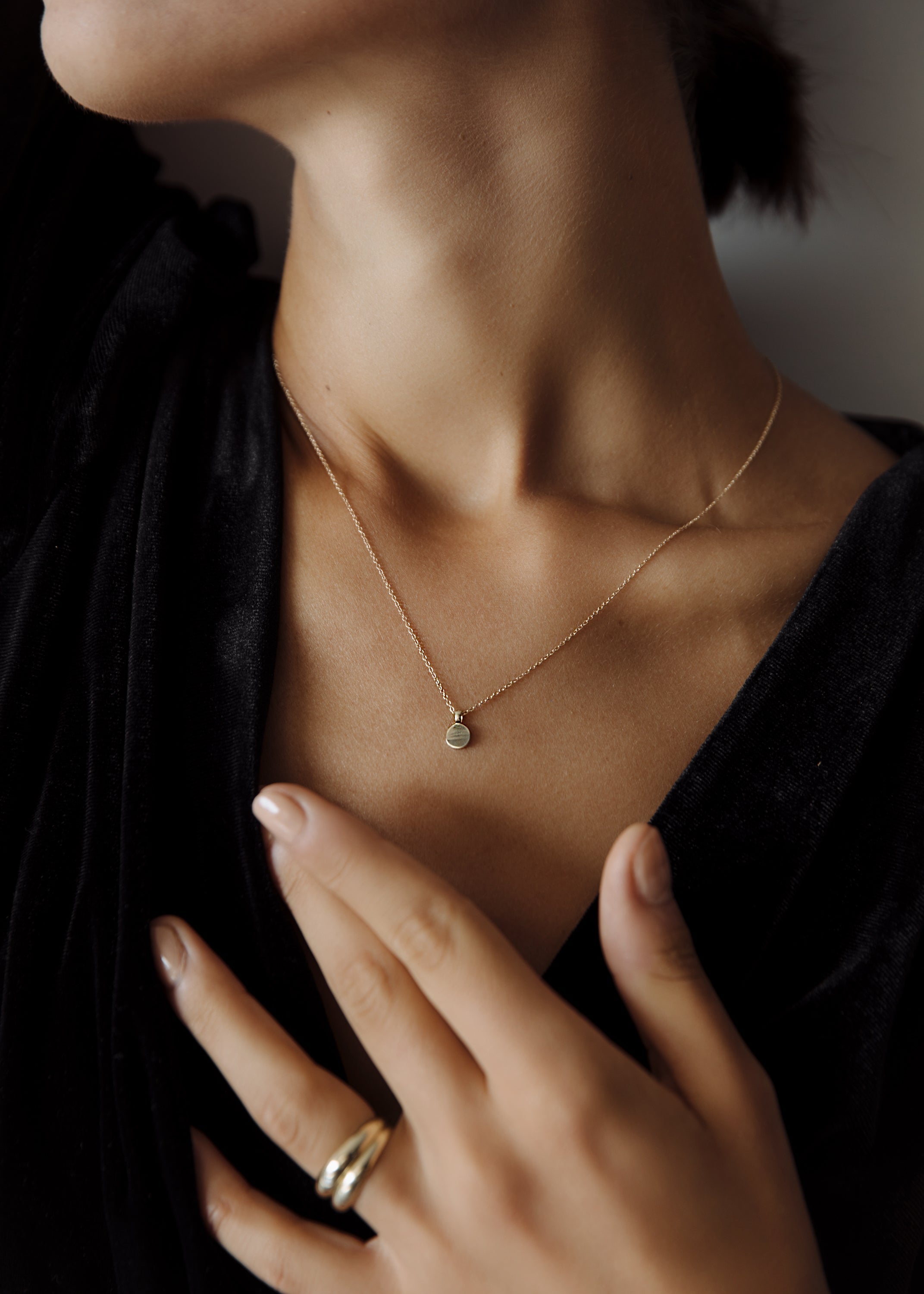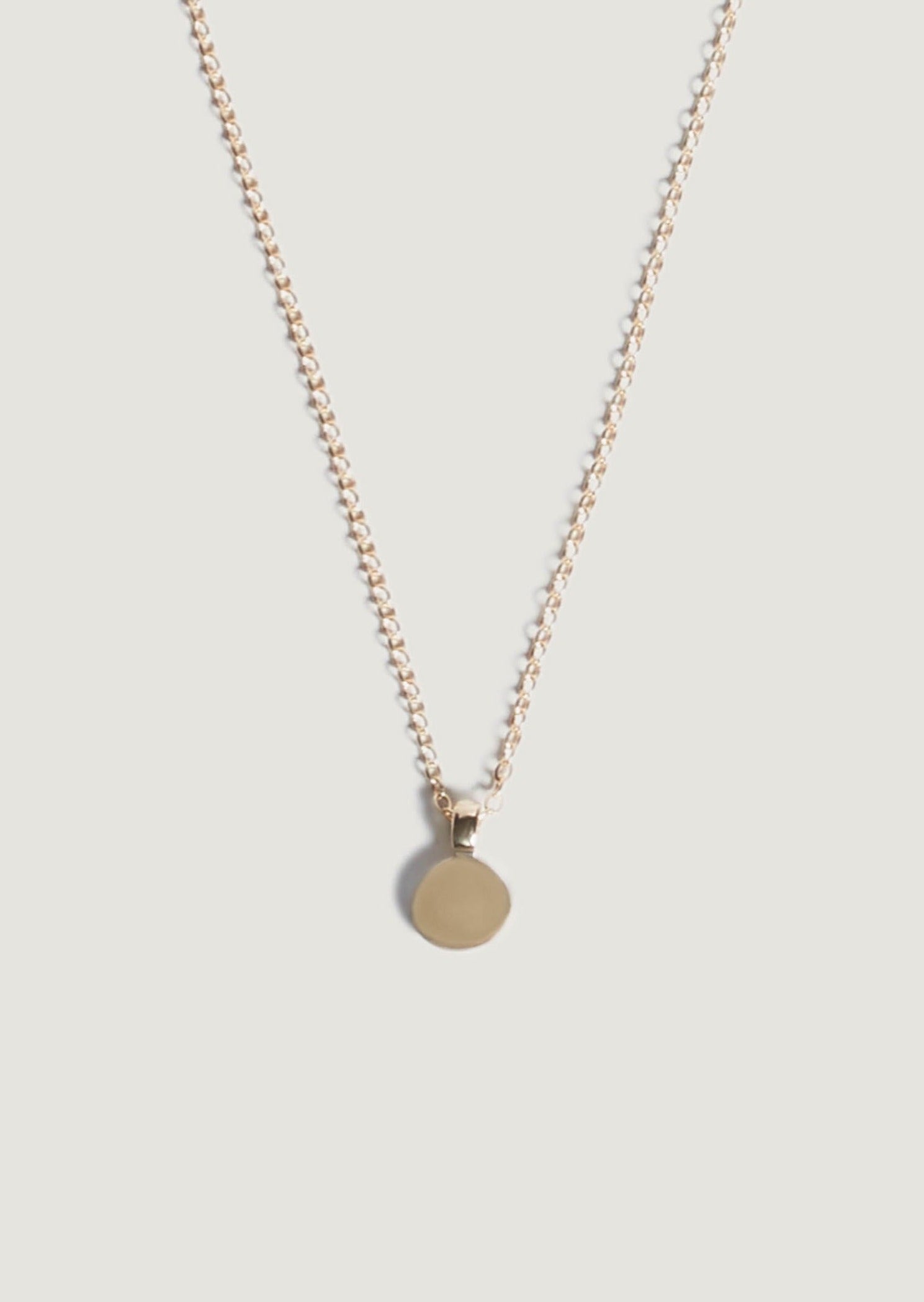 A love letter on a necklace—the Round Initial Disc Necklace is a memento and modern heirloom. Wear blank or engrave your signature letter. The pendant hangs from our Micro Rolo Chain Necklace.