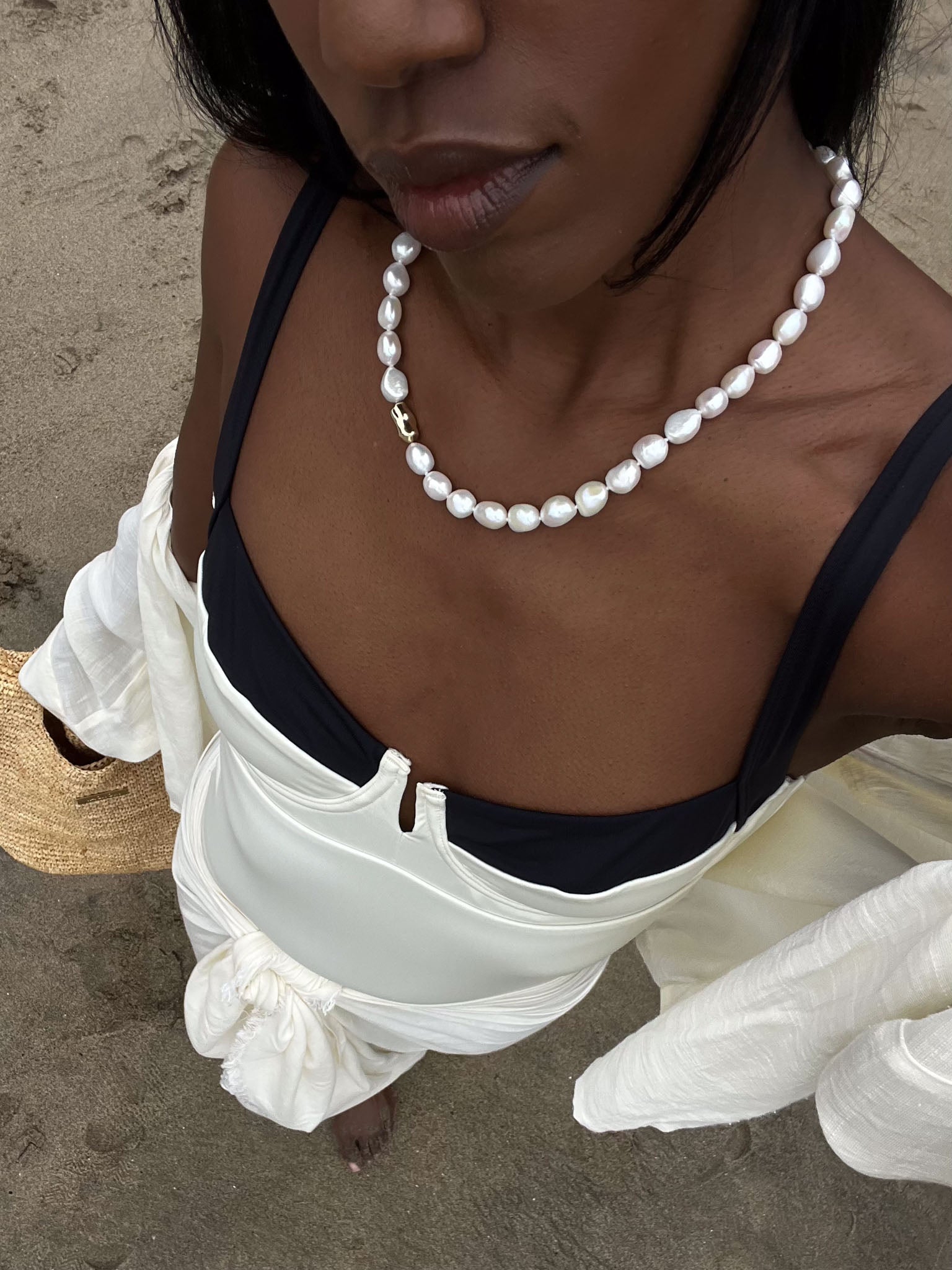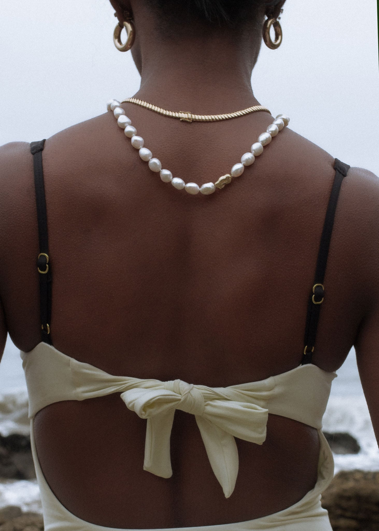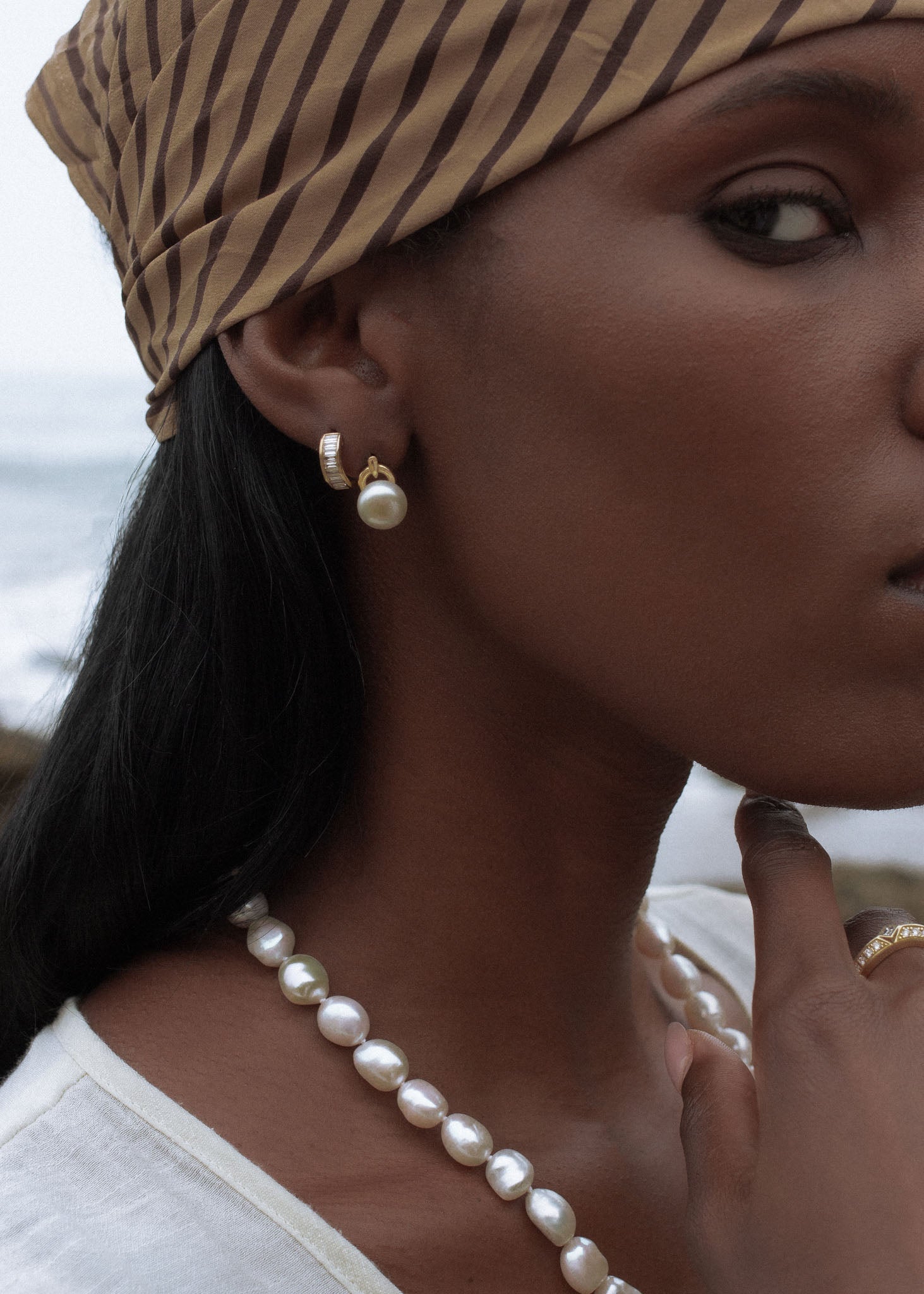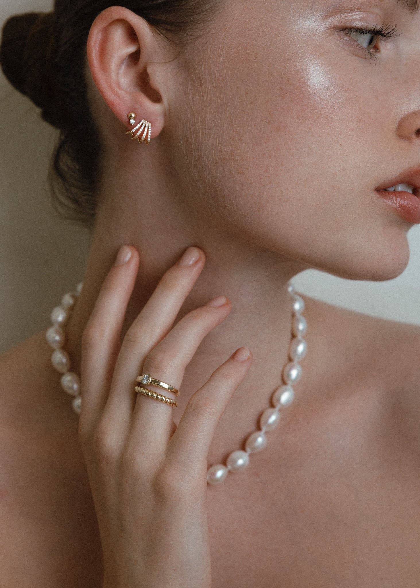 Pearl Care: Each pearl is one of a kind. To extend the life of pearl pieces, we recommend removing while showering, swimming, and using harsh products.