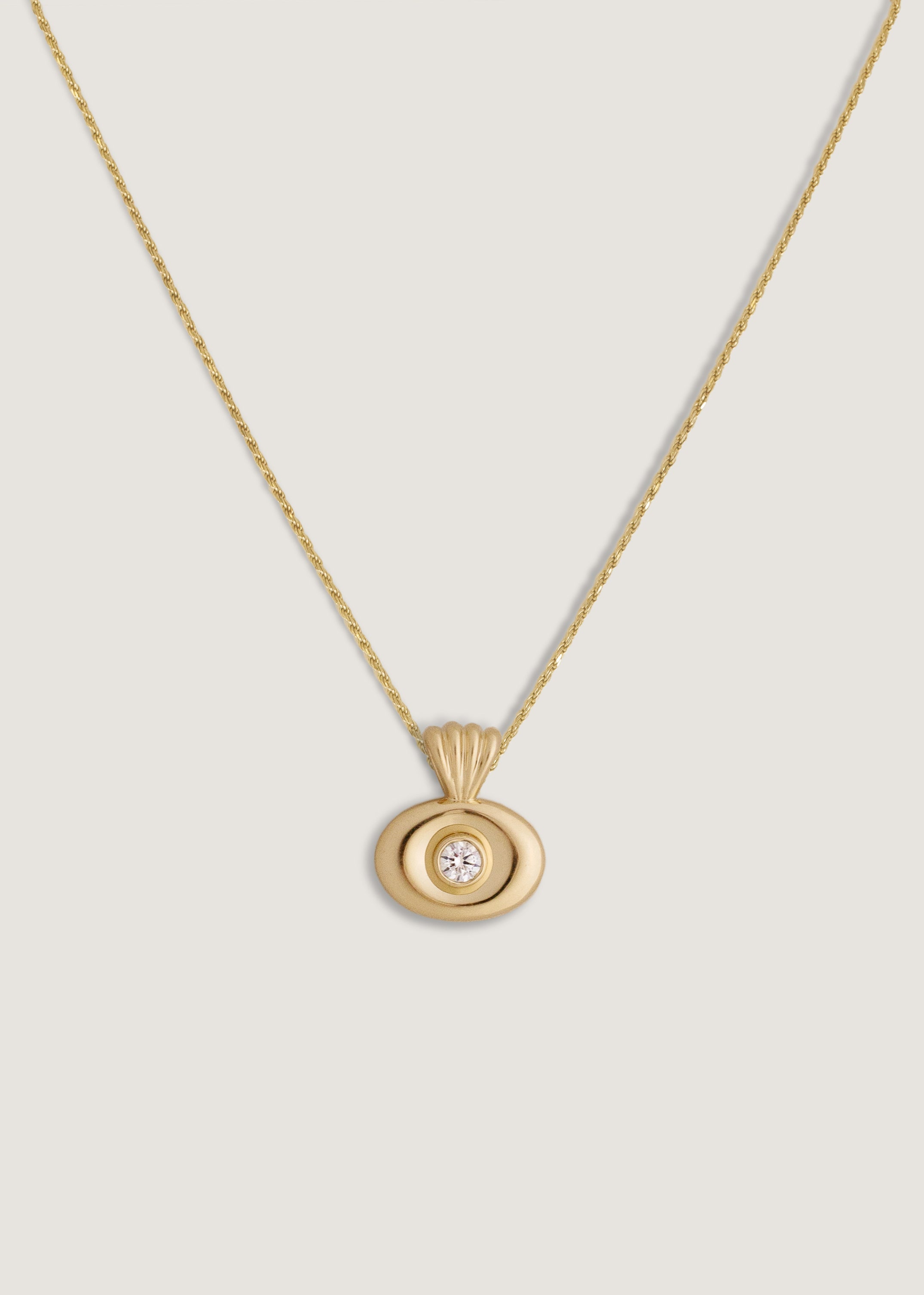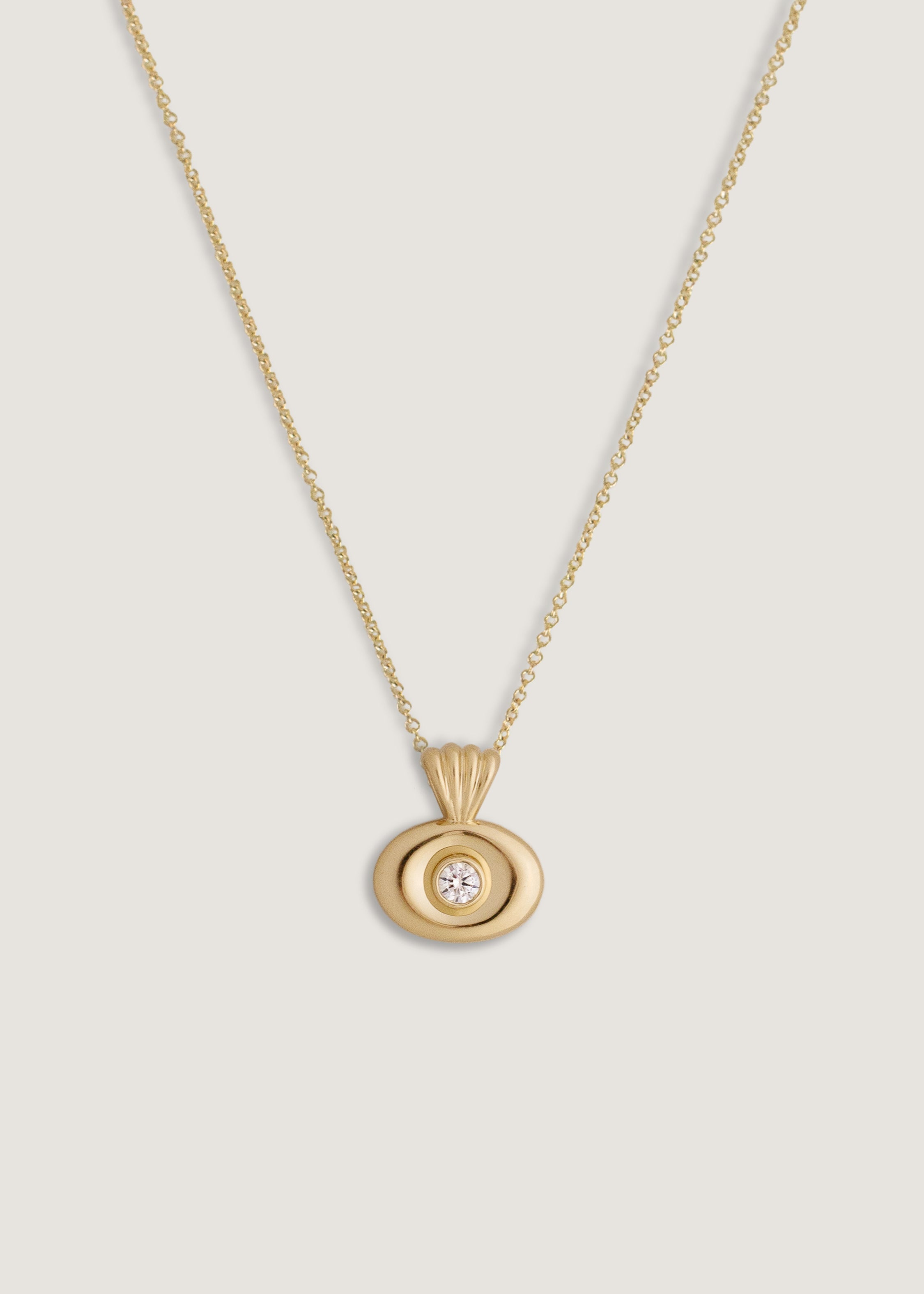 Let this piece take you to San Raphael in the South of France. Featuring a 0.19 carat lab created round diamond, wear it on your travels stacked with a herringbone chain.