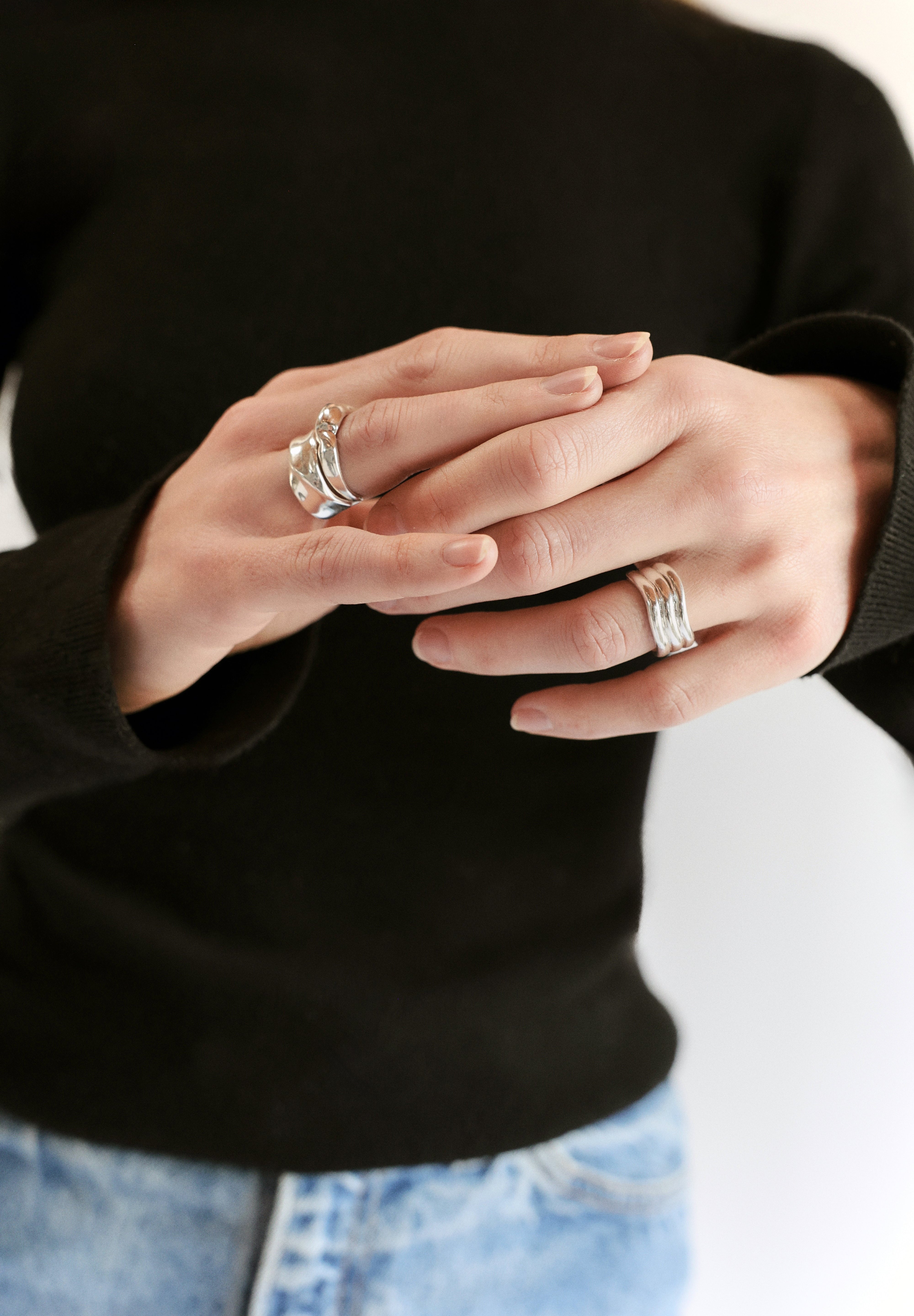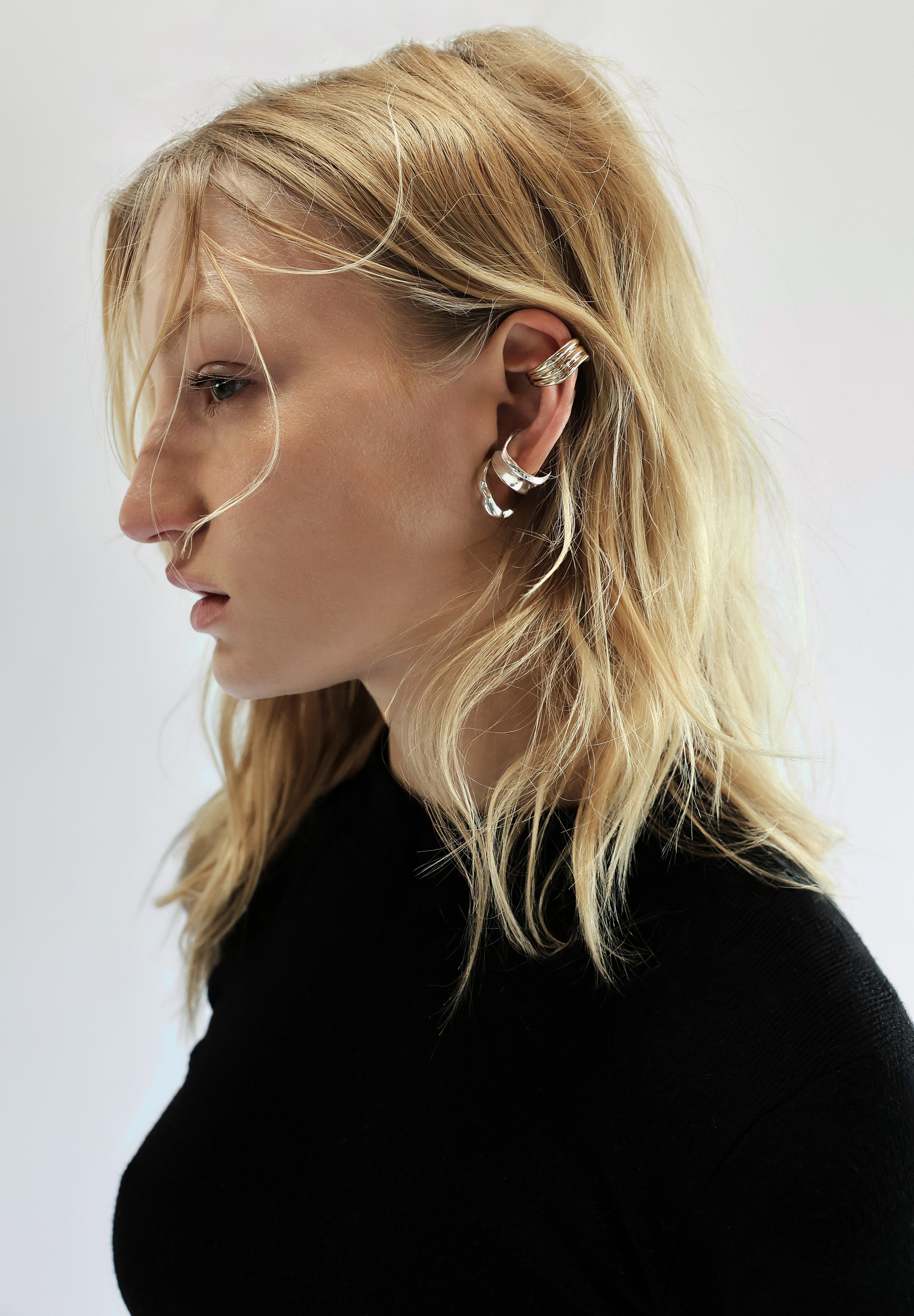 Like the ever-changing shape of water, our Seren wavy ear cuff shifts in form. Worn as an ear cuff or a ring, the sterling silver piece embraces versatility, becoming a meaningful tool for creative expression.