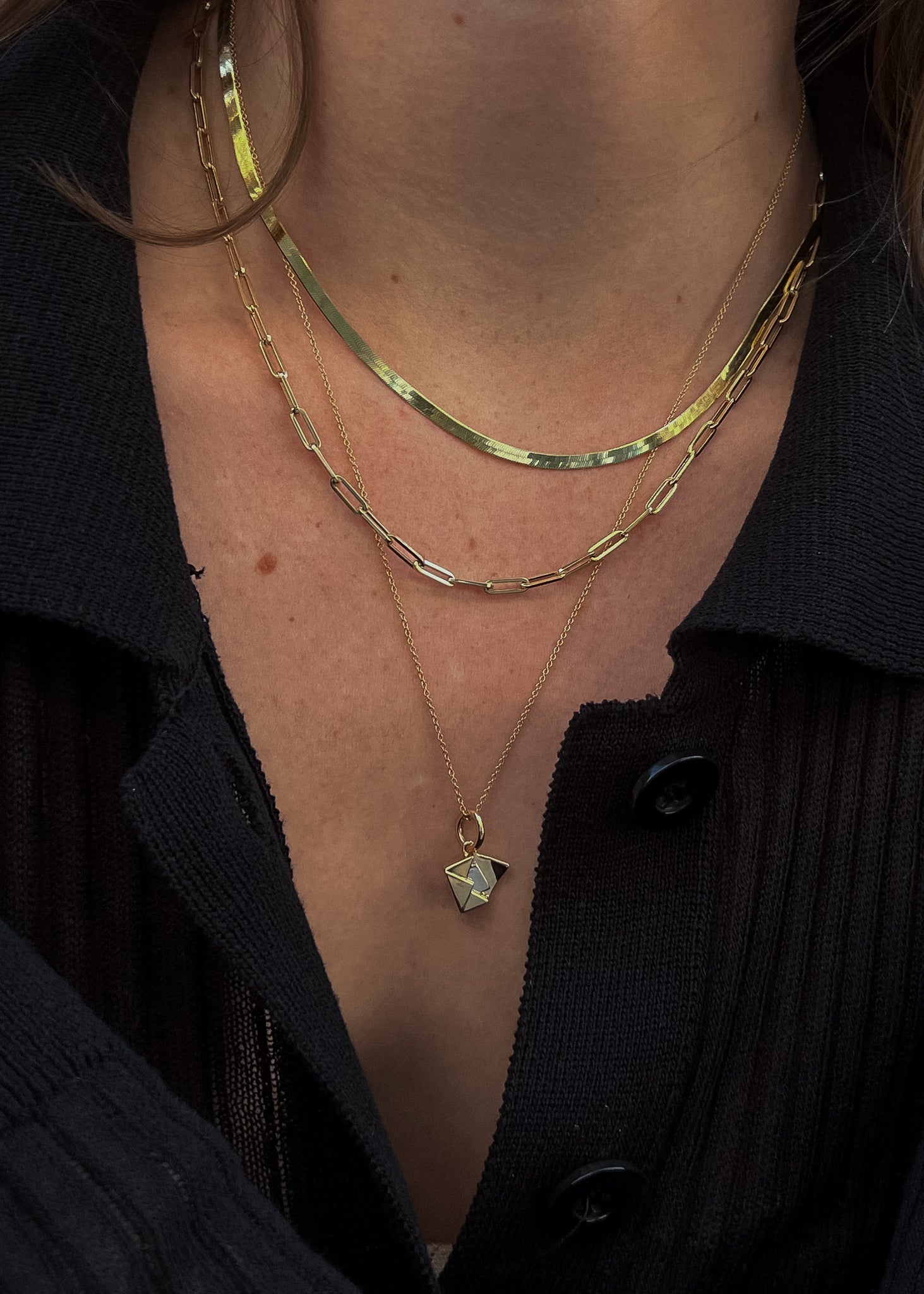 Capture the charm of a handwritten letter in 14k solid gold. Designed as a miniature envelope, this piece can add a touch of nostalgia and sentiment to your favorite necklace or bracelet. A thoughtful nod to cherished moments and personal connections—keep meaningful messages close to your heart.