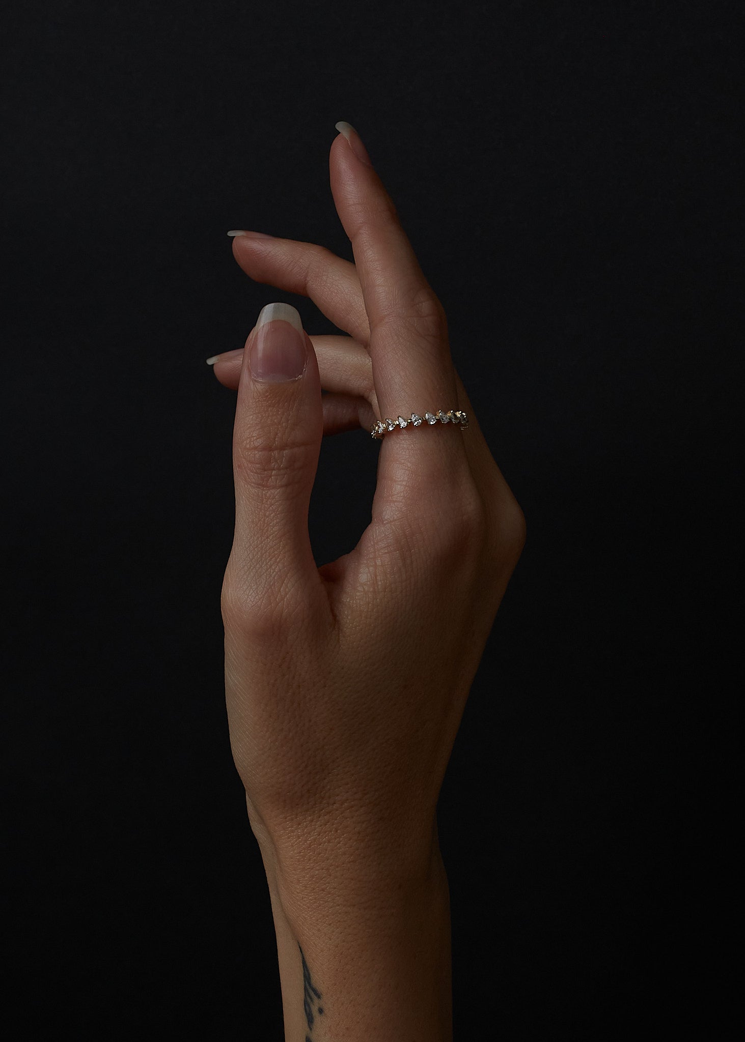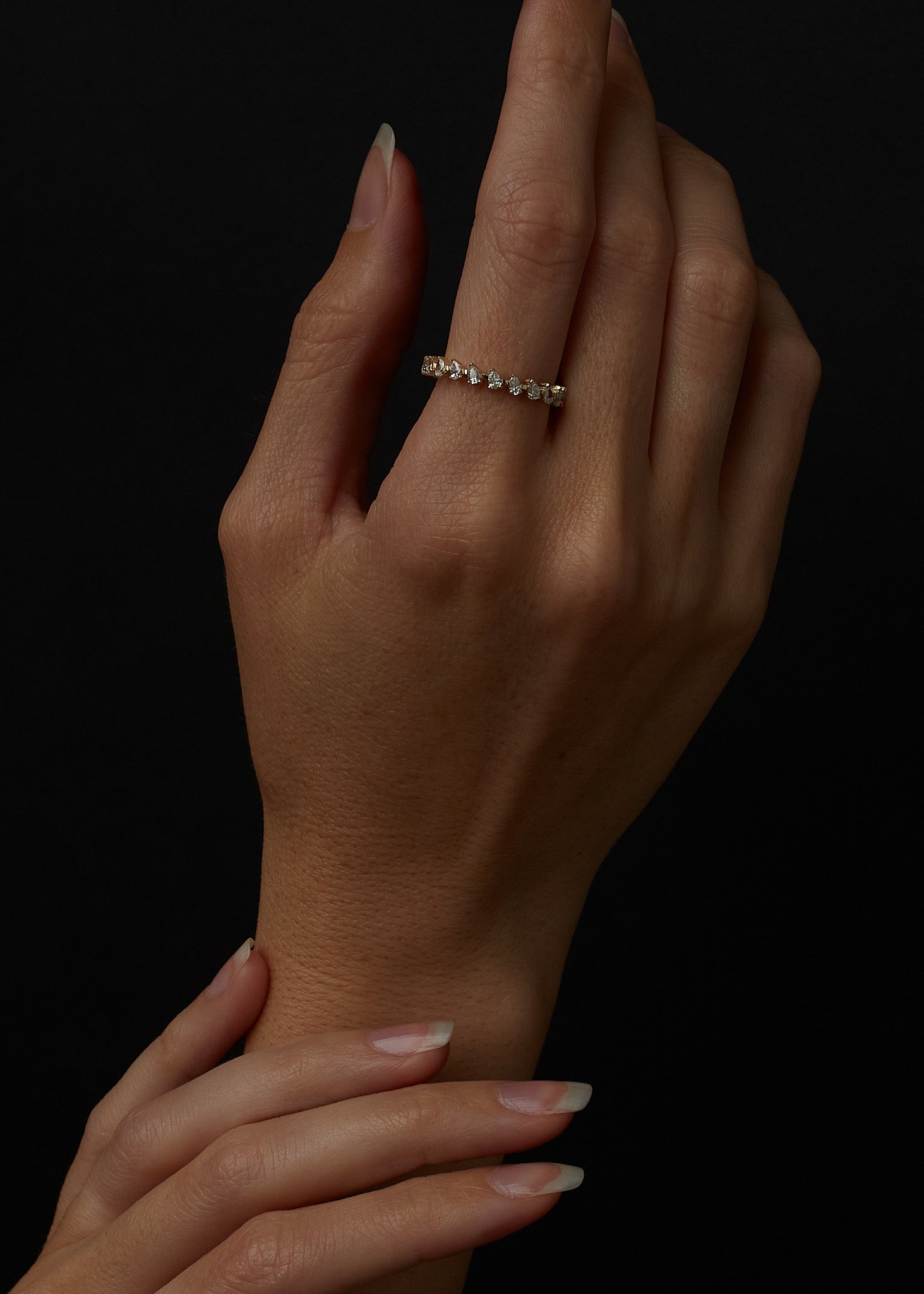 The Teardrop Eternity Diamond Ring adds dimension and individuality to your ring stack.