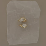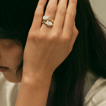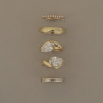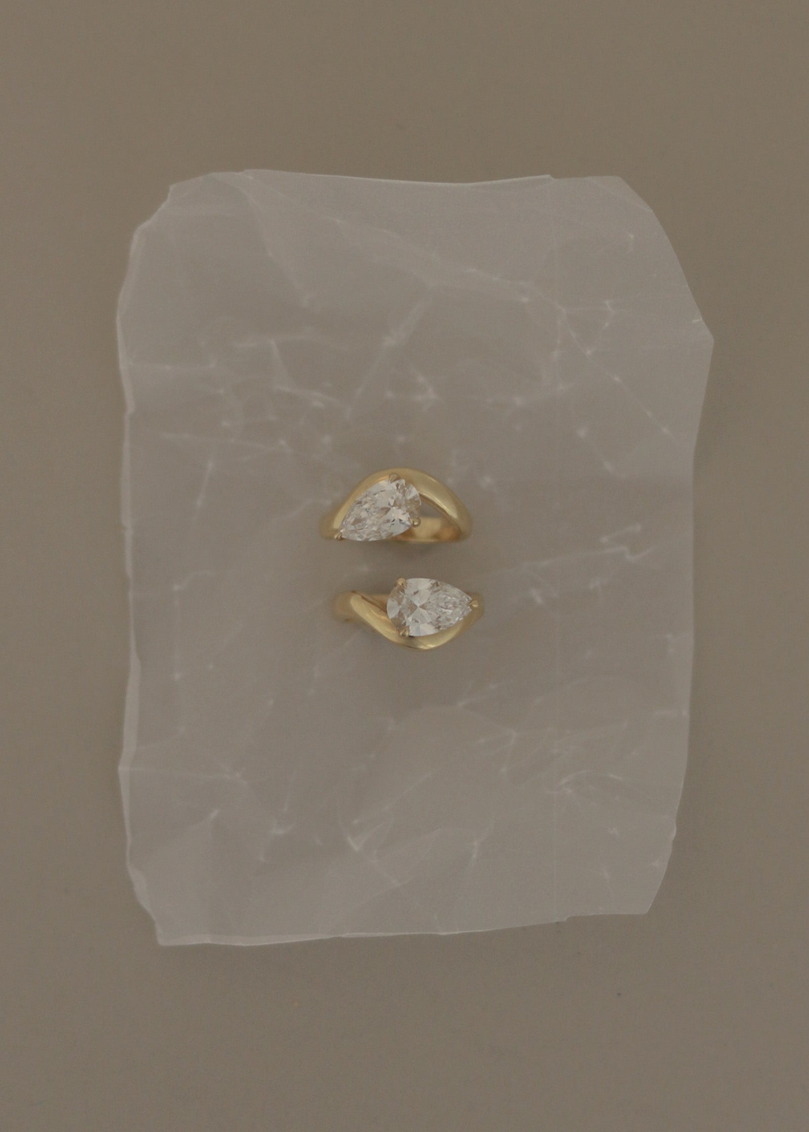 An elegant tilt toward modernity. The Kira Engagement Ring features a pear diamond set on a gently angled arc, creating a dynamic silhouette that balances boldness with grace. Designed to stack seamlessly with the Rosewood Curved Ring, it invites effortless layering with refined intent.