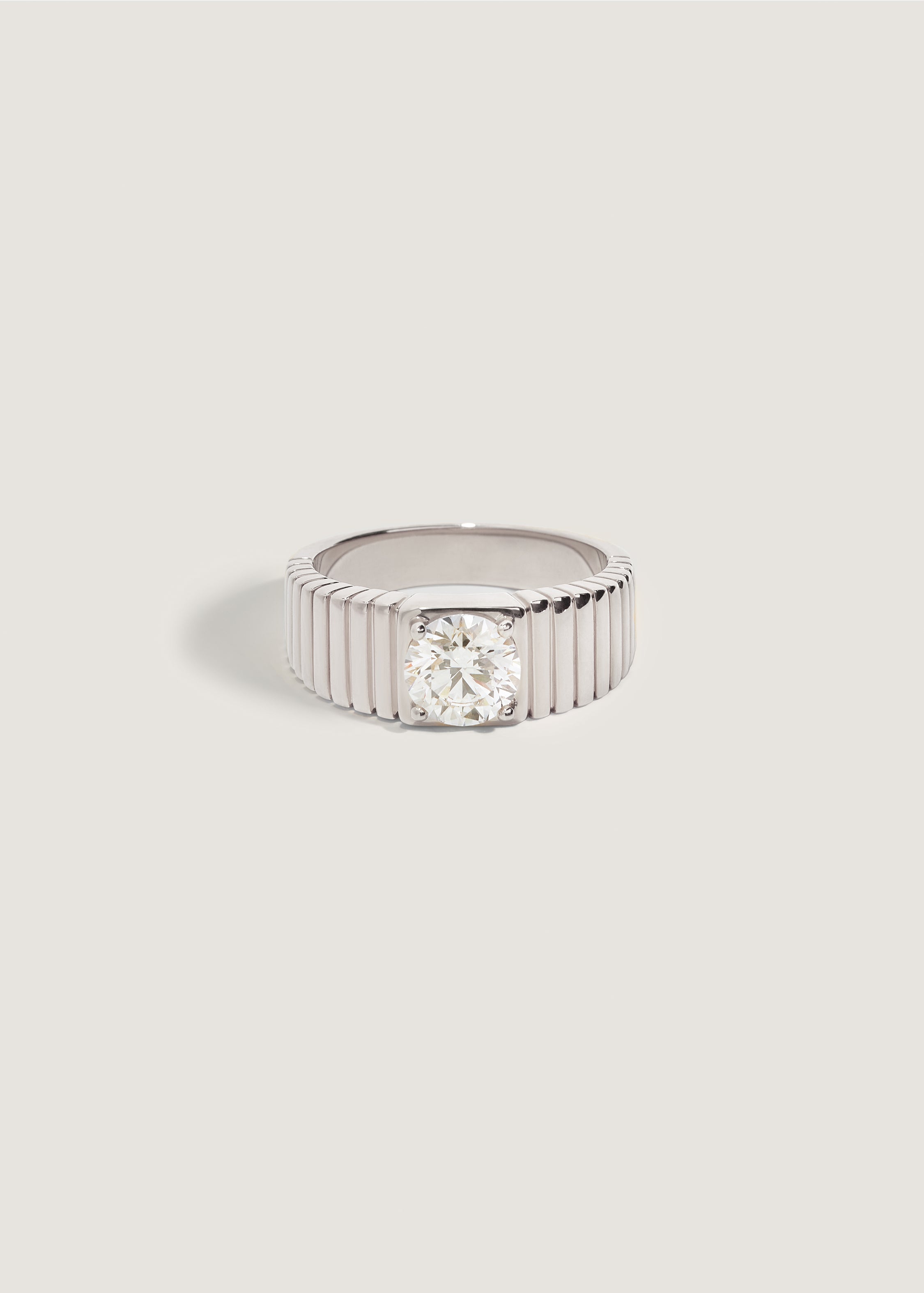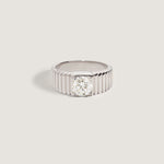 Our Solis Engagement Ring features a diamond of your choice prong set in a 14k solid yellow or white gold ribbed band.