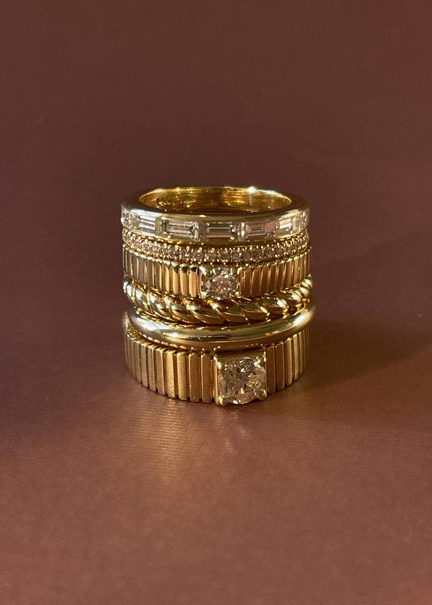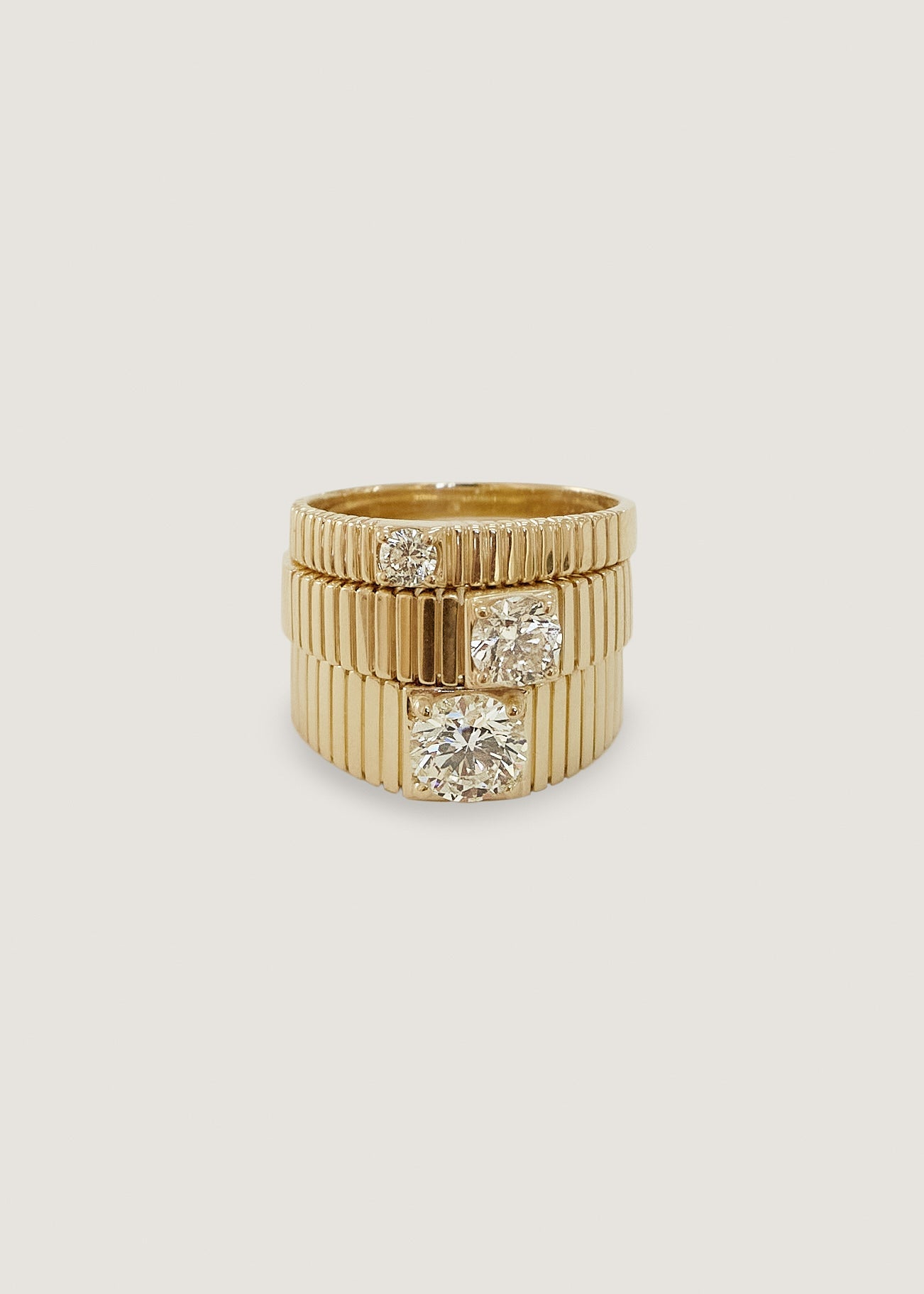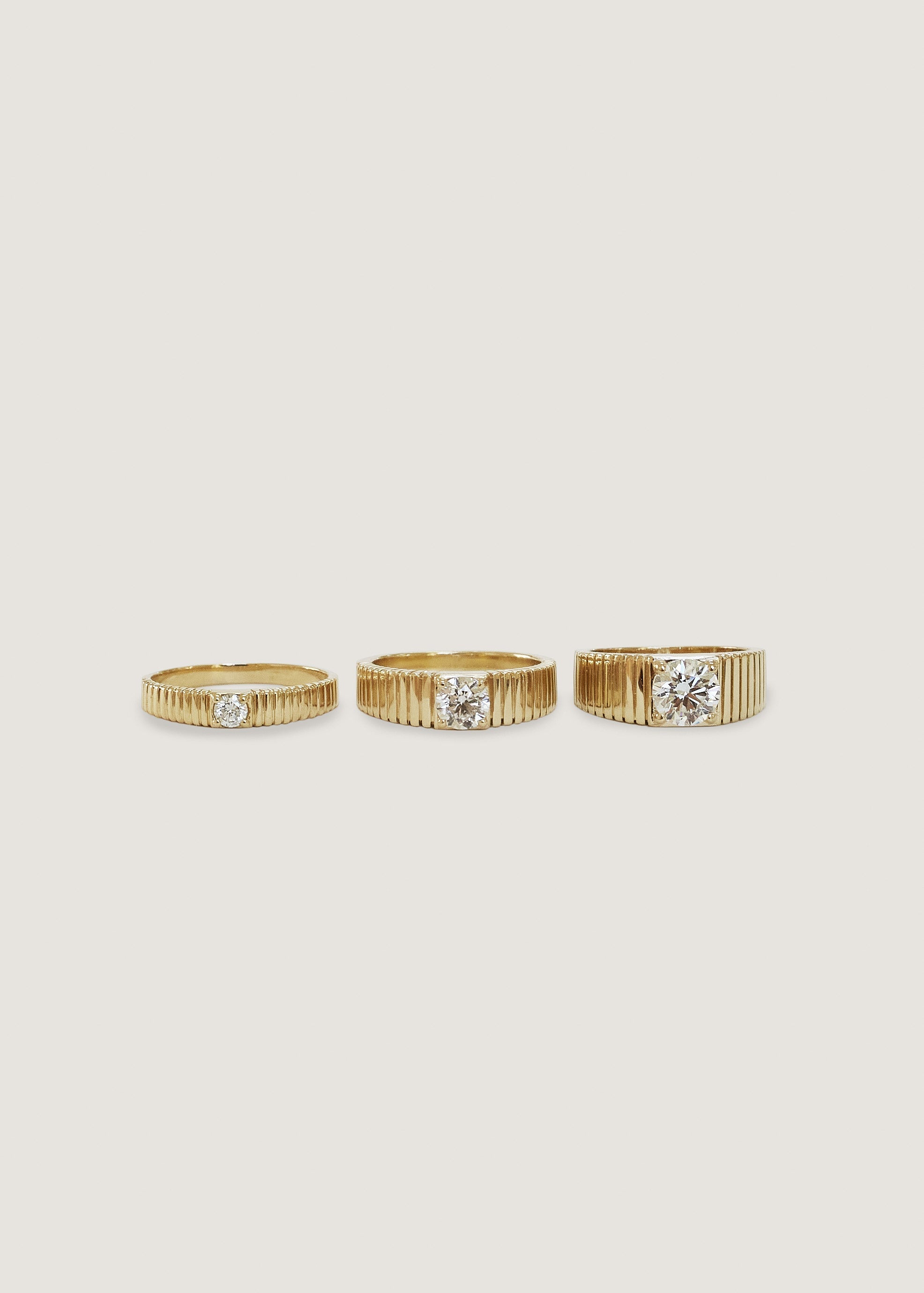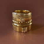 Inspired by Jennie's mother's vintage pleated ring, the Solis collection represents energy and strength.