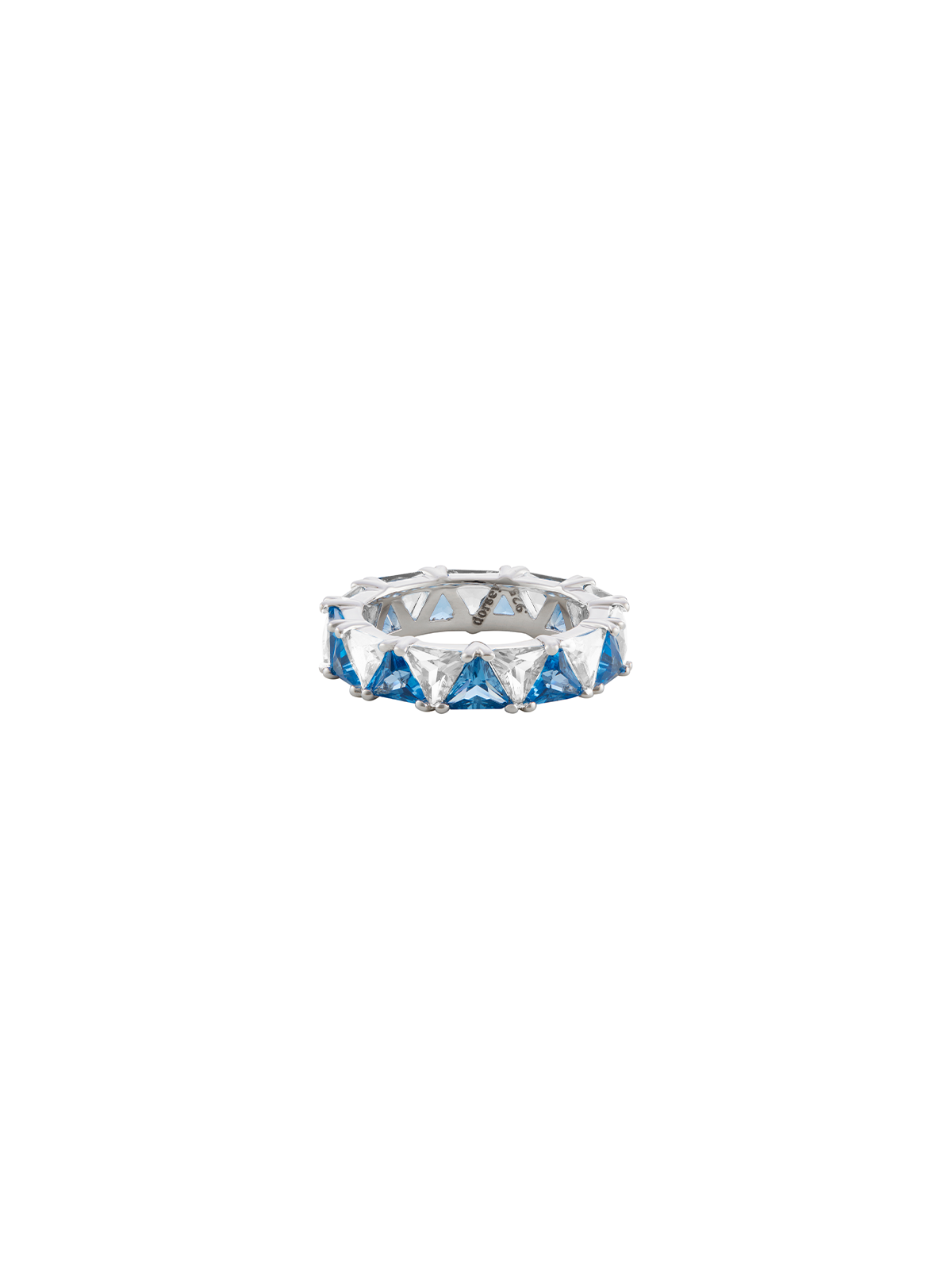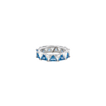 Crafted from trillion cut lab-grown blue topaz spinel and white sapphires, Theodora is designed to be effortlessly stacked. Discover the entire Theodora Ring Collection here.