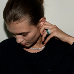 Crafted from trillion cut lab-grown white sapphires and lab-grown emeralds, Theodora is designed to be effortlessly stacked. Discover the entire Theodora Ring Collection here.