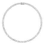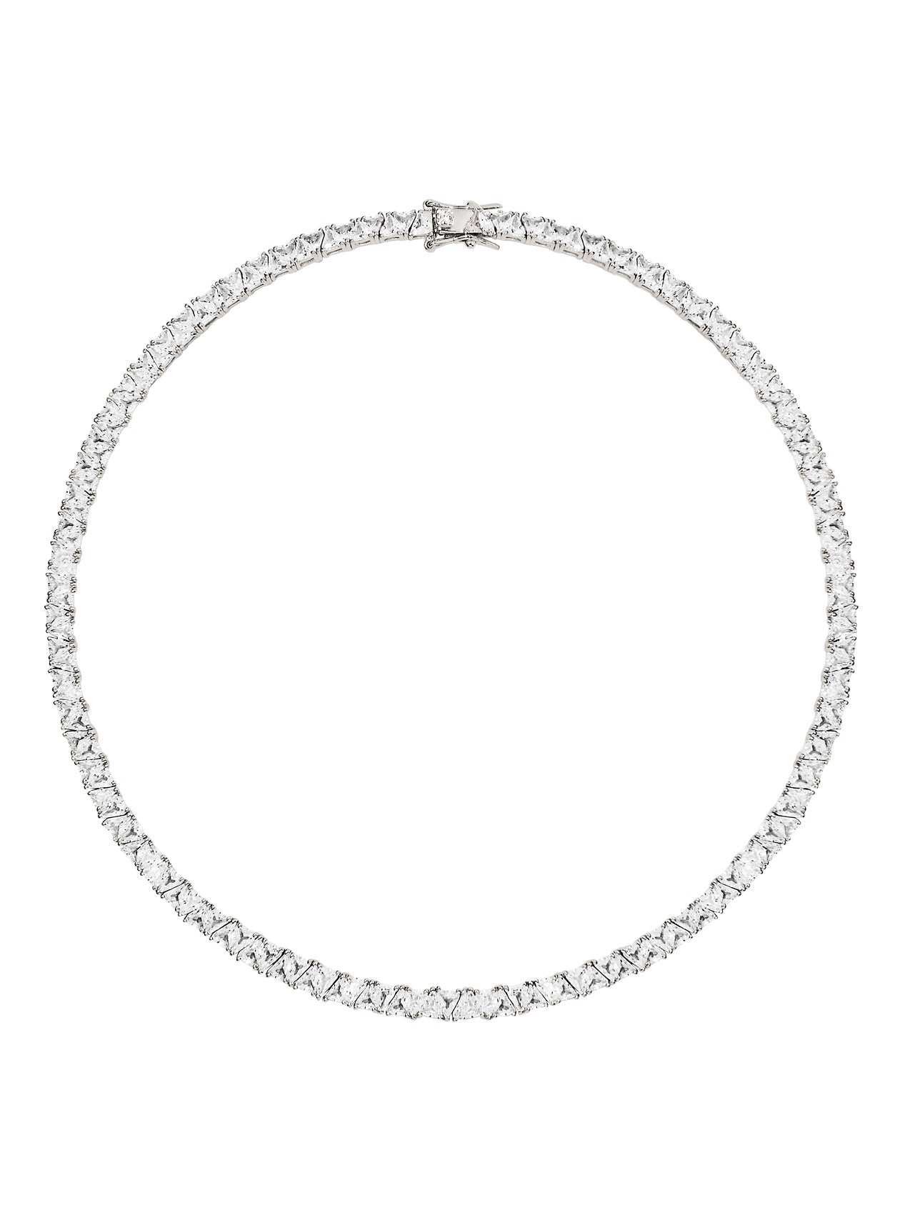 Crafted from individually set 4MM trillion-cut lab-grown white sapphire gemstones, each secured in a classic three-prong setting, the Theodora Rivière Necklace embodies timeless elegance. Set in sterling silver, this piece is finished with a box clasp closure and double safety hooks for added security.