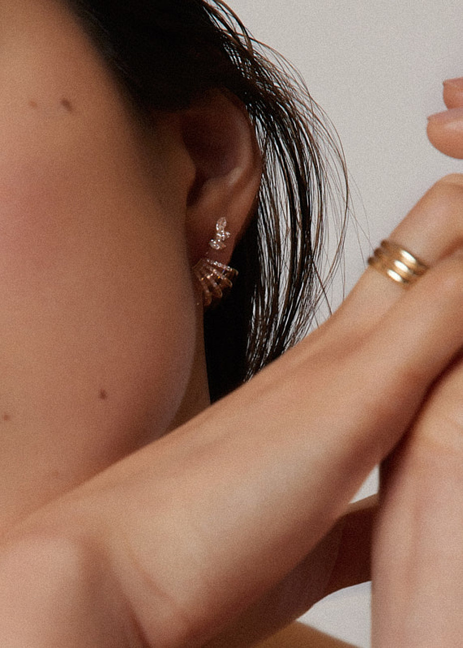 A reimagined marquise crawler stud design—three diamonds rest in a row to create an unmistakable modern heirloom.