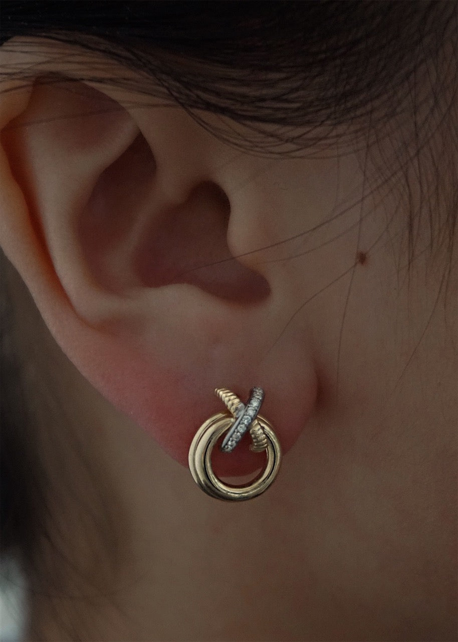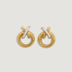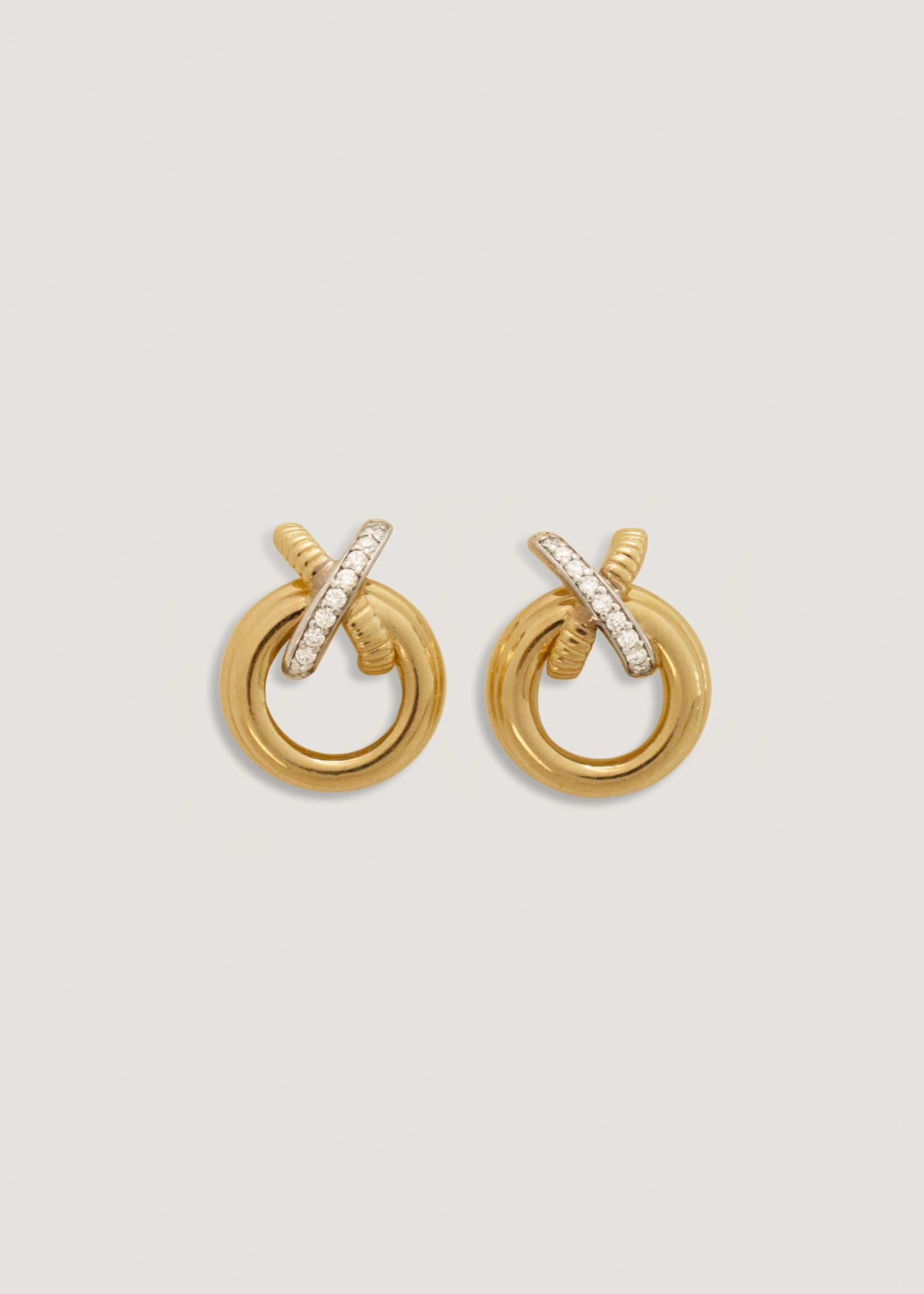This pair of Two Toned X Earrings features a channel of pavé diamonds set in radiant white gold, elegantly contrasted by yellow gold ribbing for a striking, timeless design.