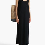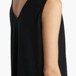 An easy-fitting sleeveless dress in jersey that gains its raw, natural quality from organic Japanese silk. Scooped neckline mirrored at back. Slips on.