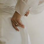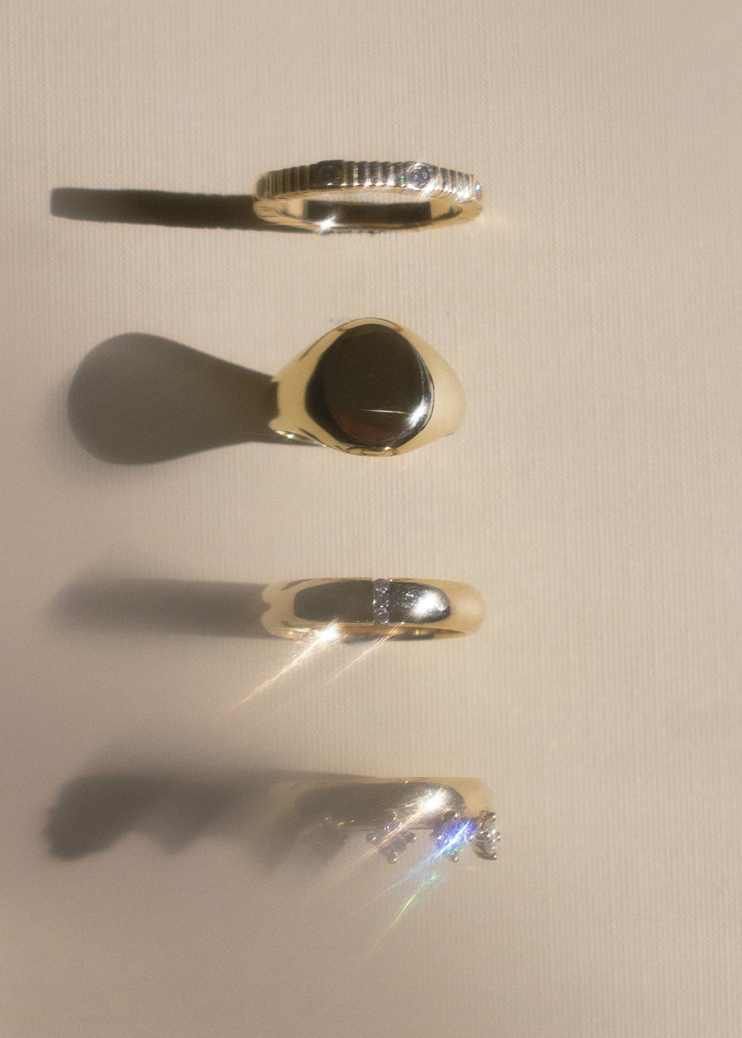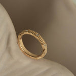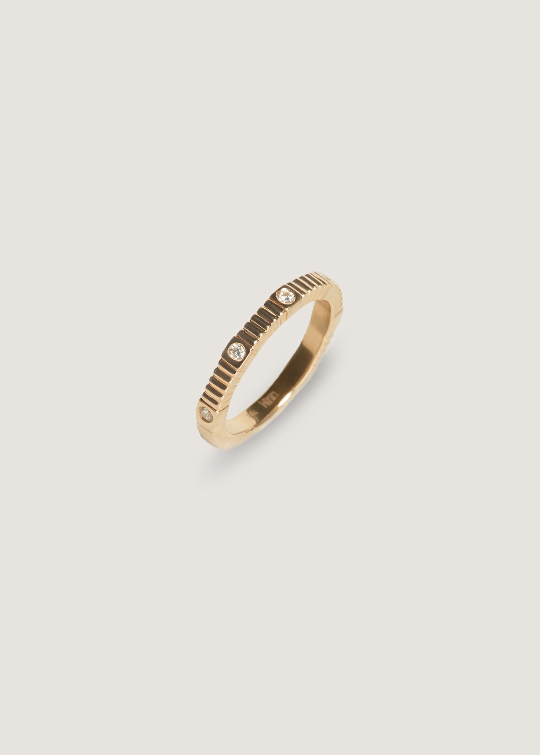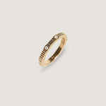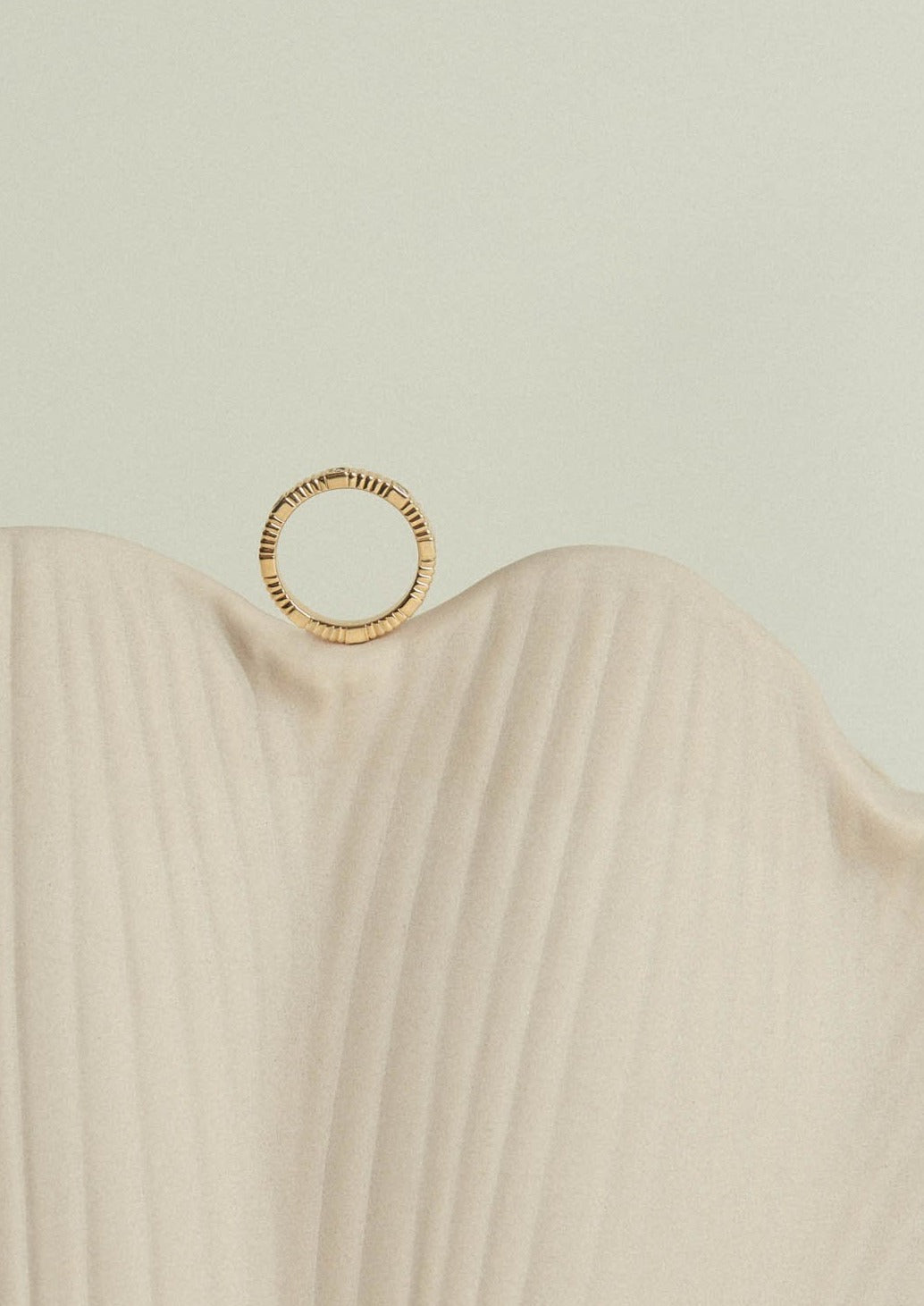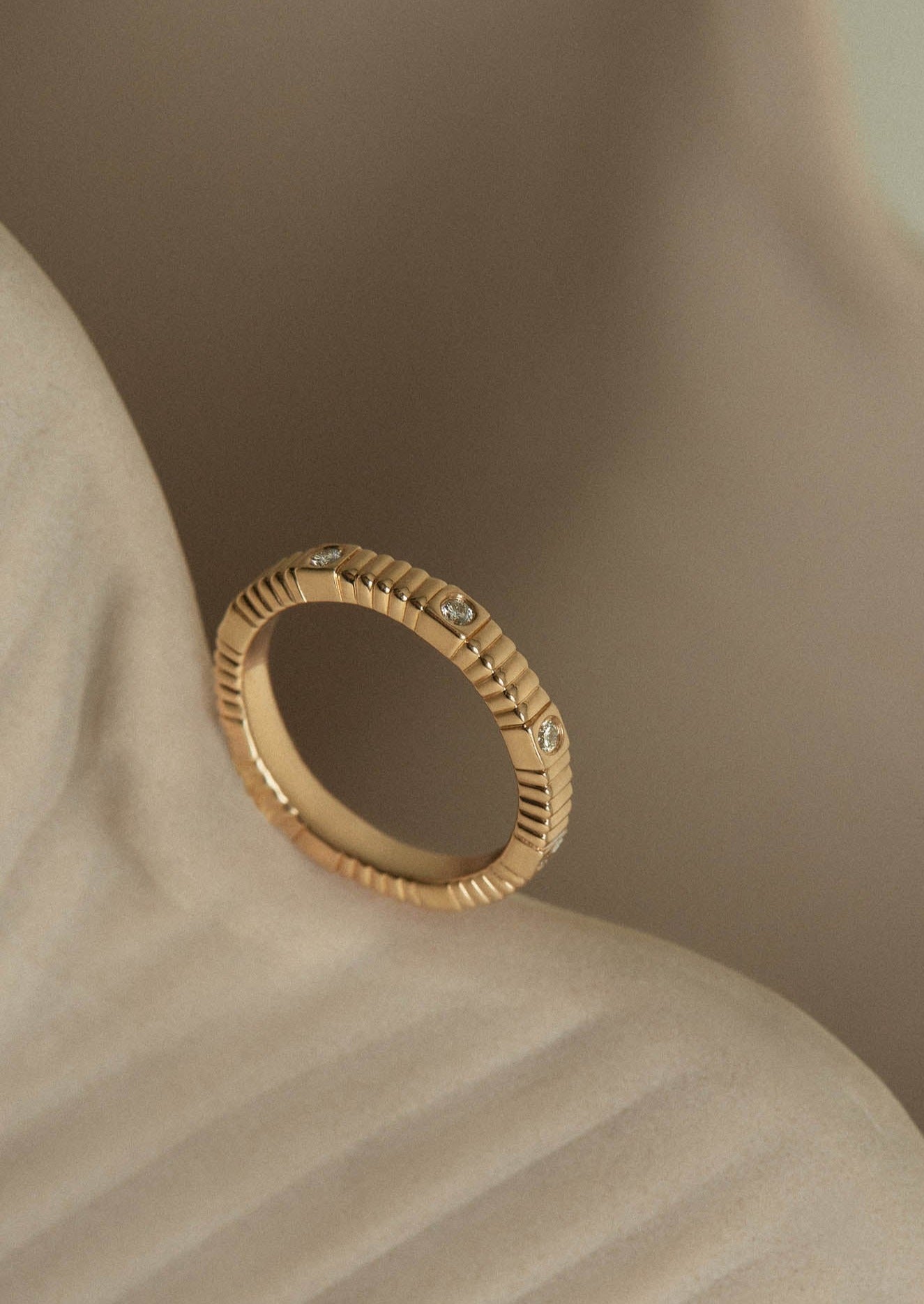 Inspired by the classic ribbing in our best selling Solis Ring—The Inés eternity band is a timeless piece, featuring eight round diamonds flush set in a 14k gold band.