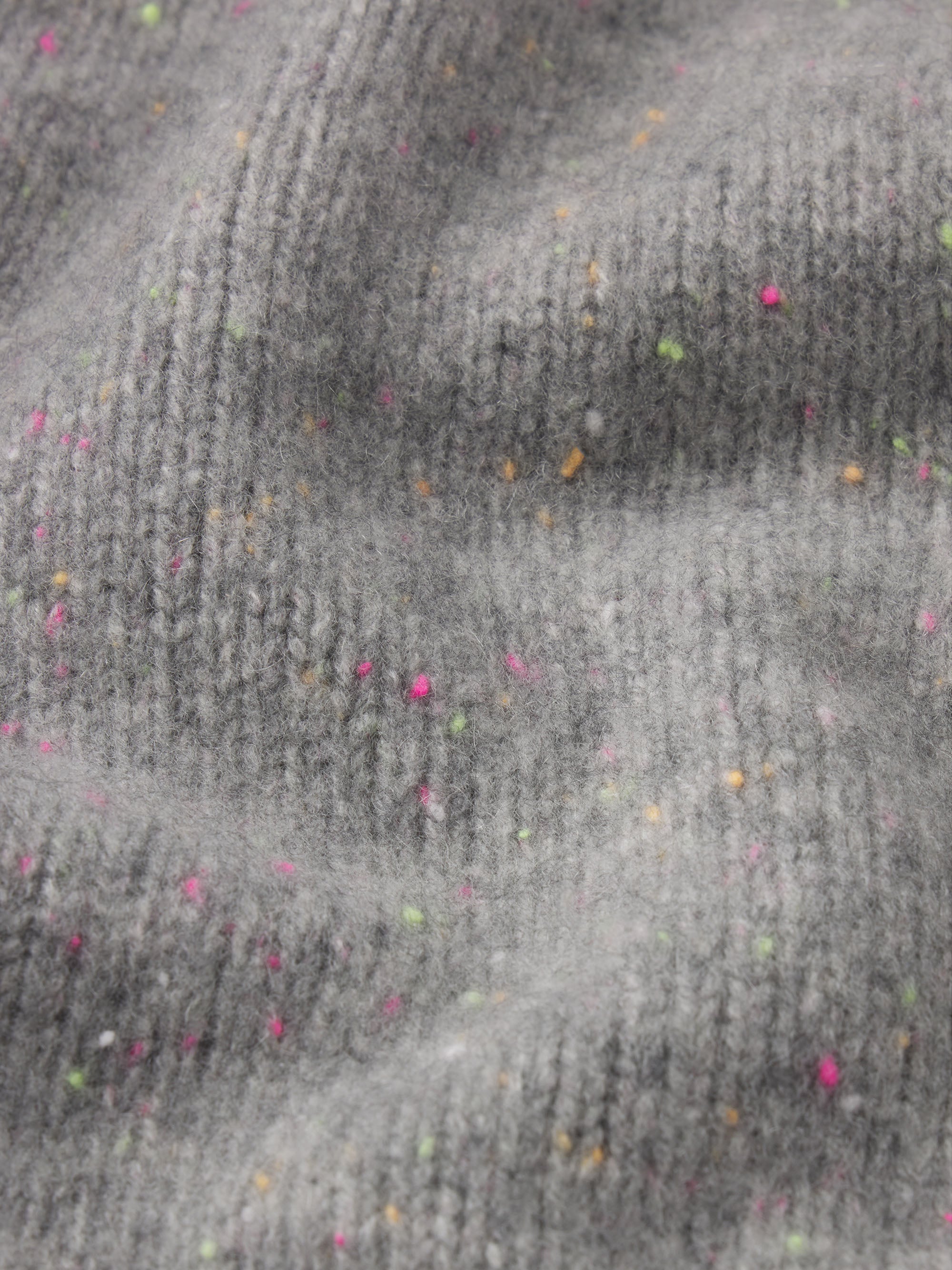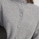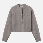 This pure cashmere cardigan is knit in a light grey yarn, envlivened by multi-colored flecks throughout. A relaxed silhouette, ribbed at the neck, cuff and hem and finished with luxe self-covered cashmere buttons.
