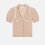 Our bestselling sailor sweater, now in 100% cashmere pointelle. Soft, lightweight and breathable, with a contrast collar and subtle scalloping at the hem.