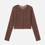 Intricately crocheted from pure cotton, this cardigan features a geometric open-knit pattern and scalloped edges throughout. Finished with self-covered buttons for a thoughtful touch, it’s a breathable layer that marries vintage character and modern charm.