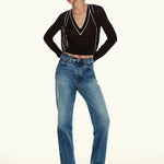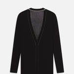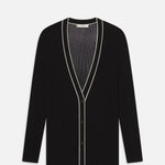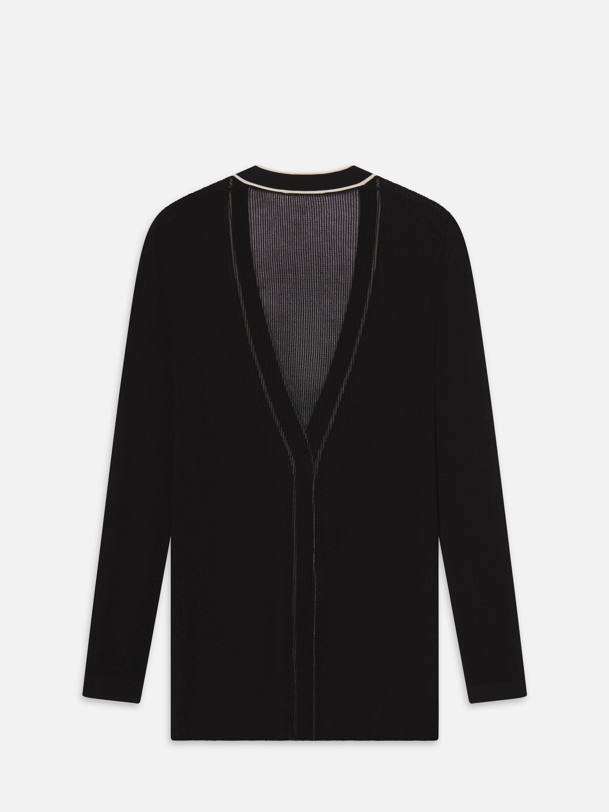Prep, perfected. Knit from a breathable cotton-viscose blend, this open-stitch cardigan features bold contrast striping and varsity-inspired rib trim. The fit is close to the body without being tight—ideal layered over the matching vest and denim.