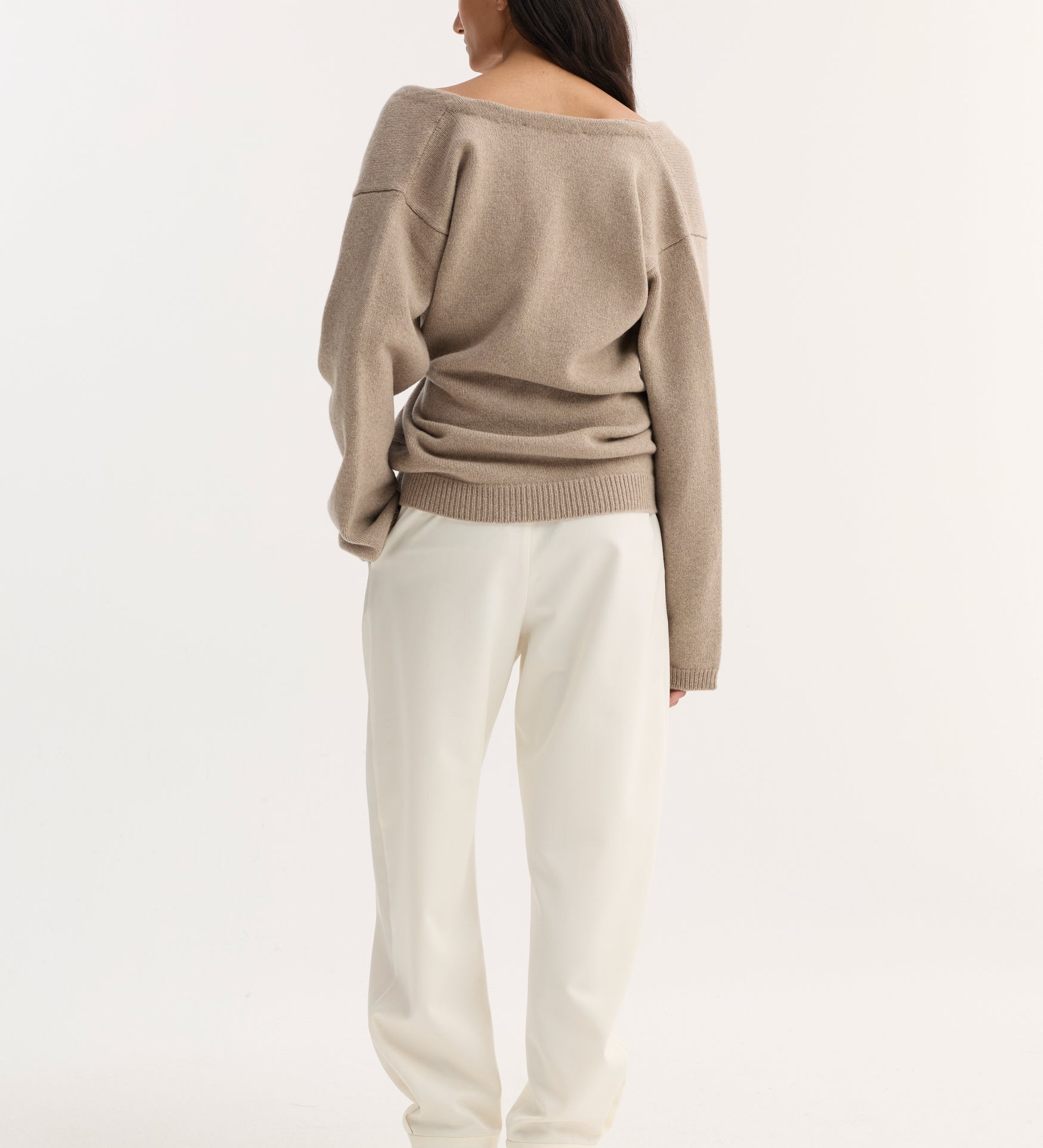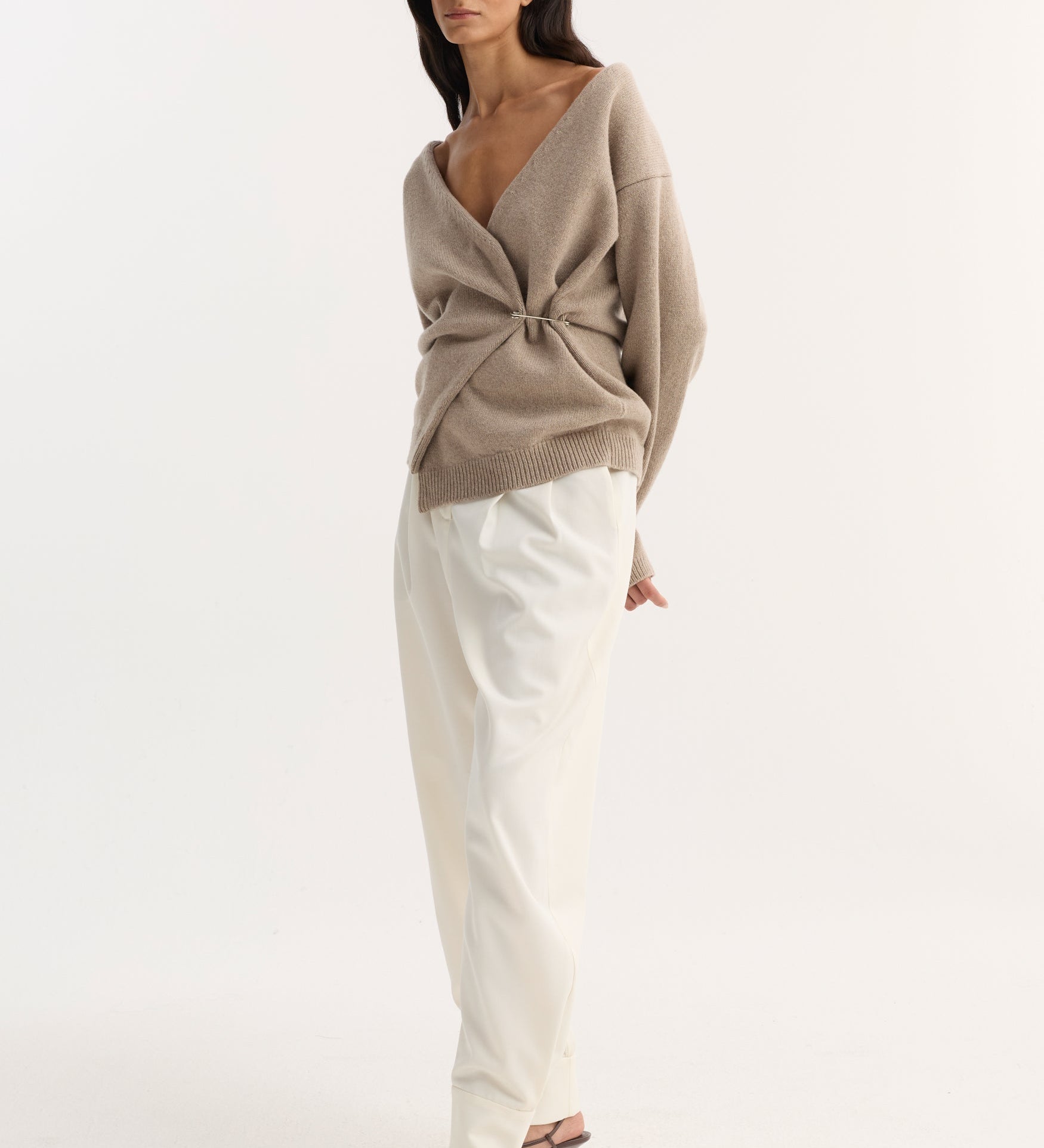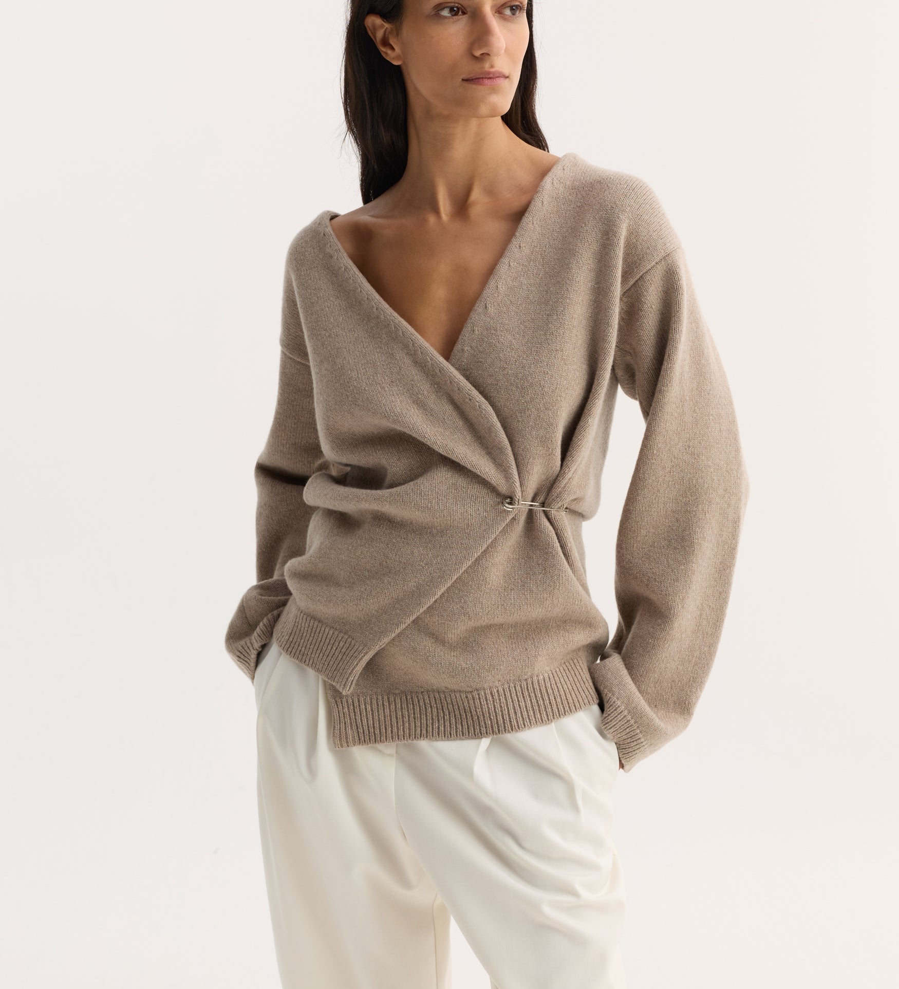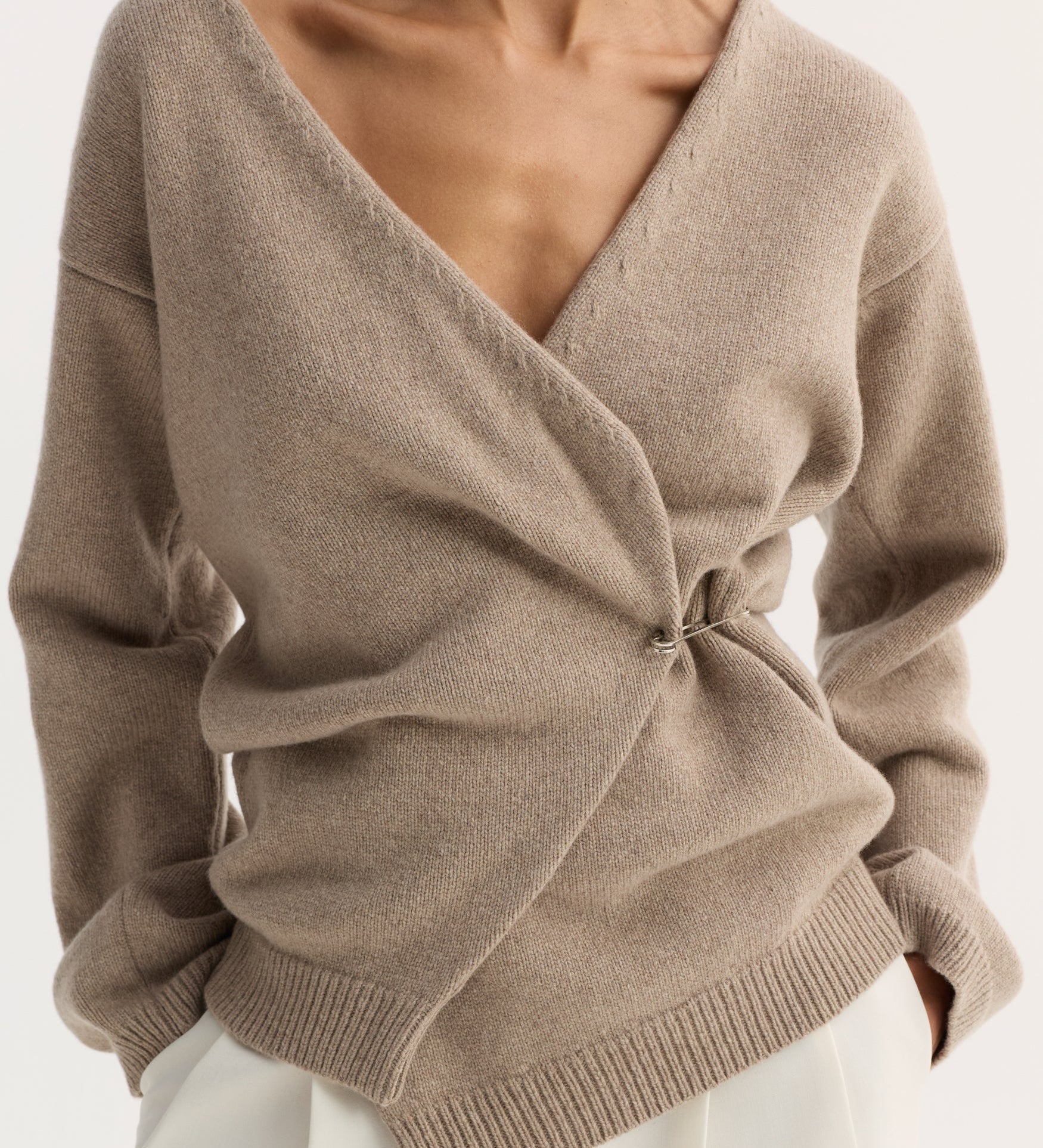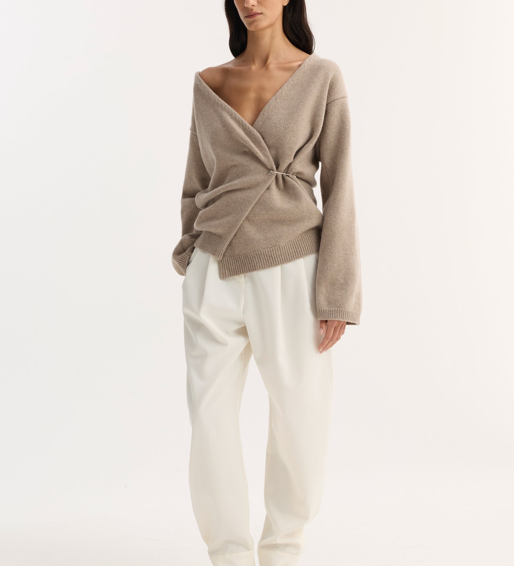 ROHE - Off-shoulder wrap cardigan | light taupe