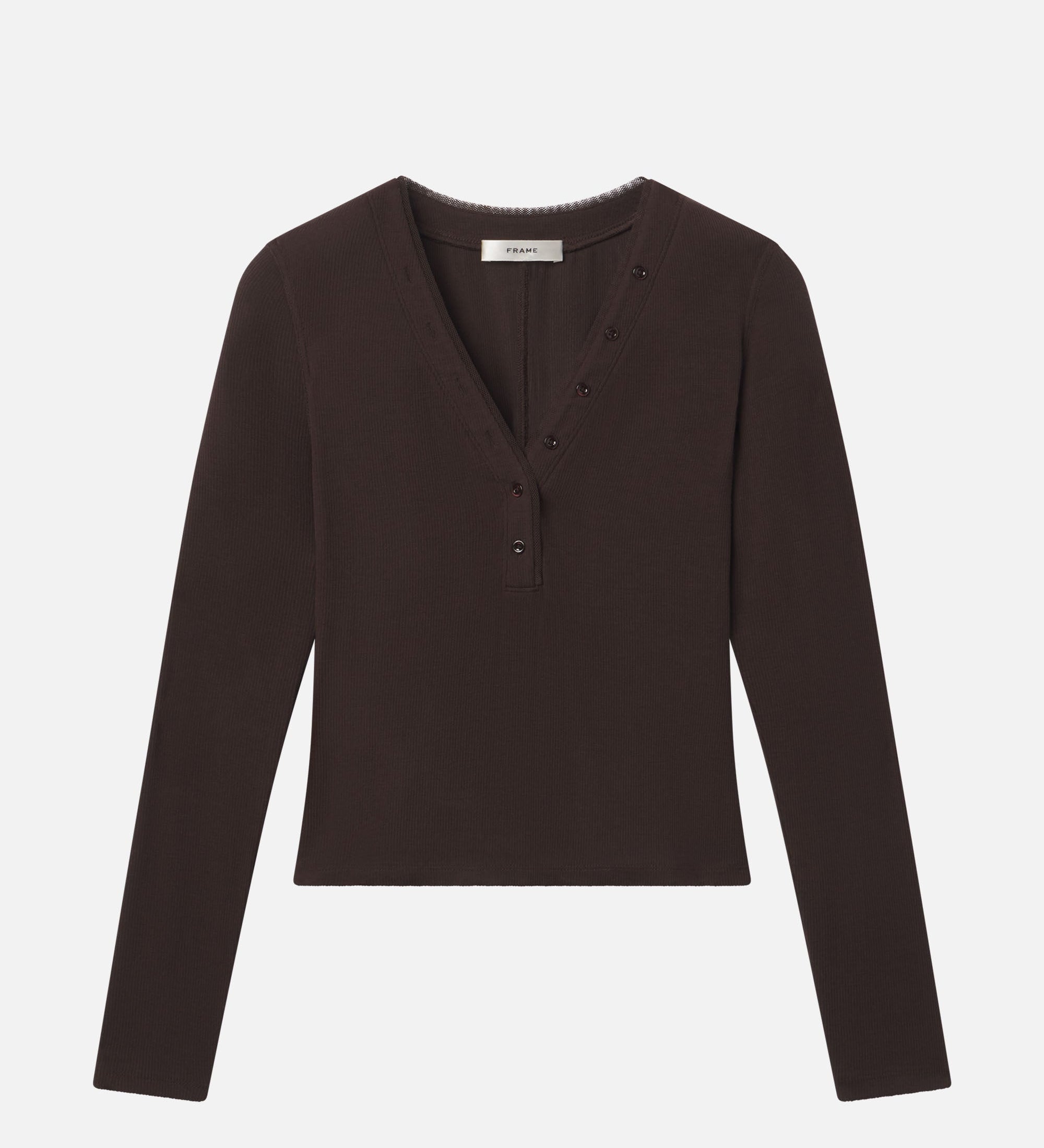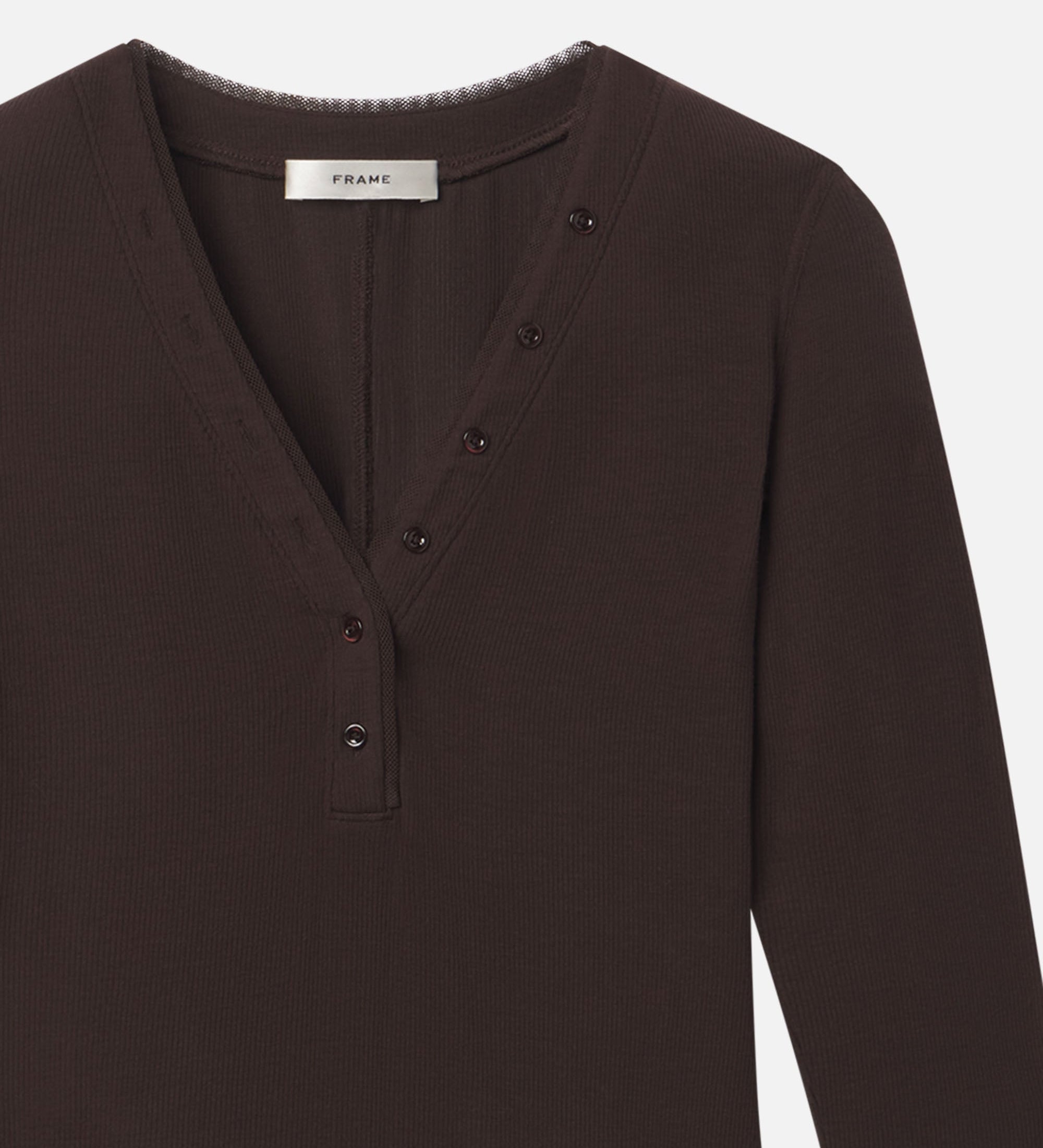FRAME - The Mesh Trim Rib Henley -- Coffee