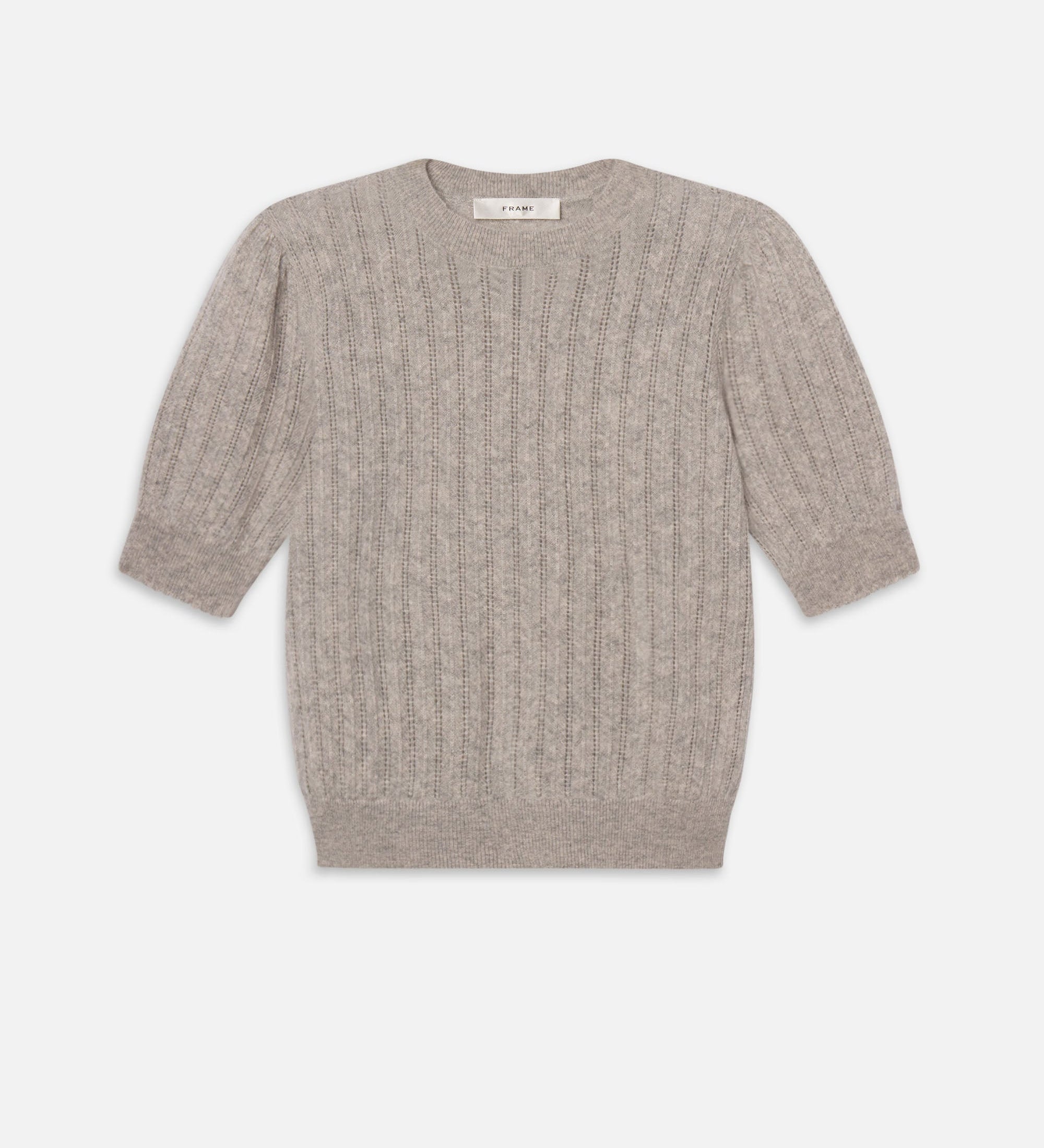 FRAME - The Ladder Pointelle Sweater -- Light Heather Grey