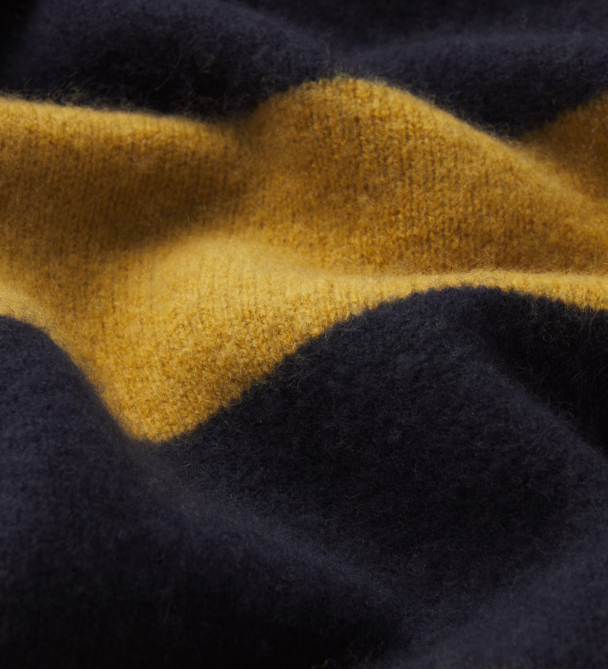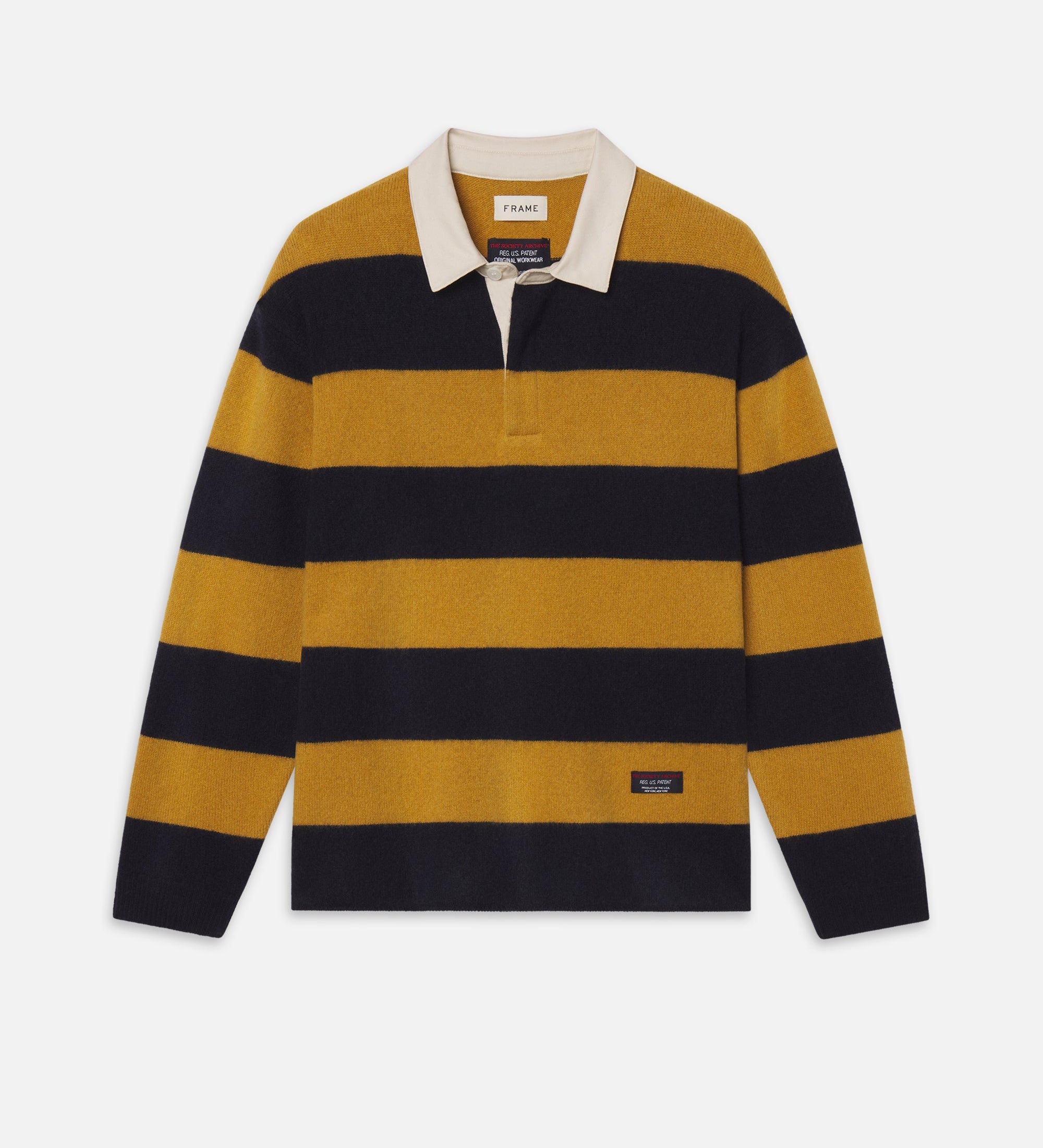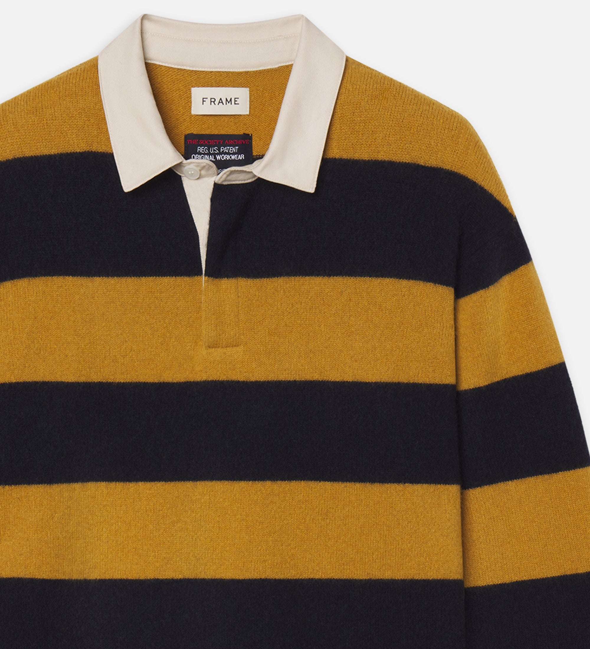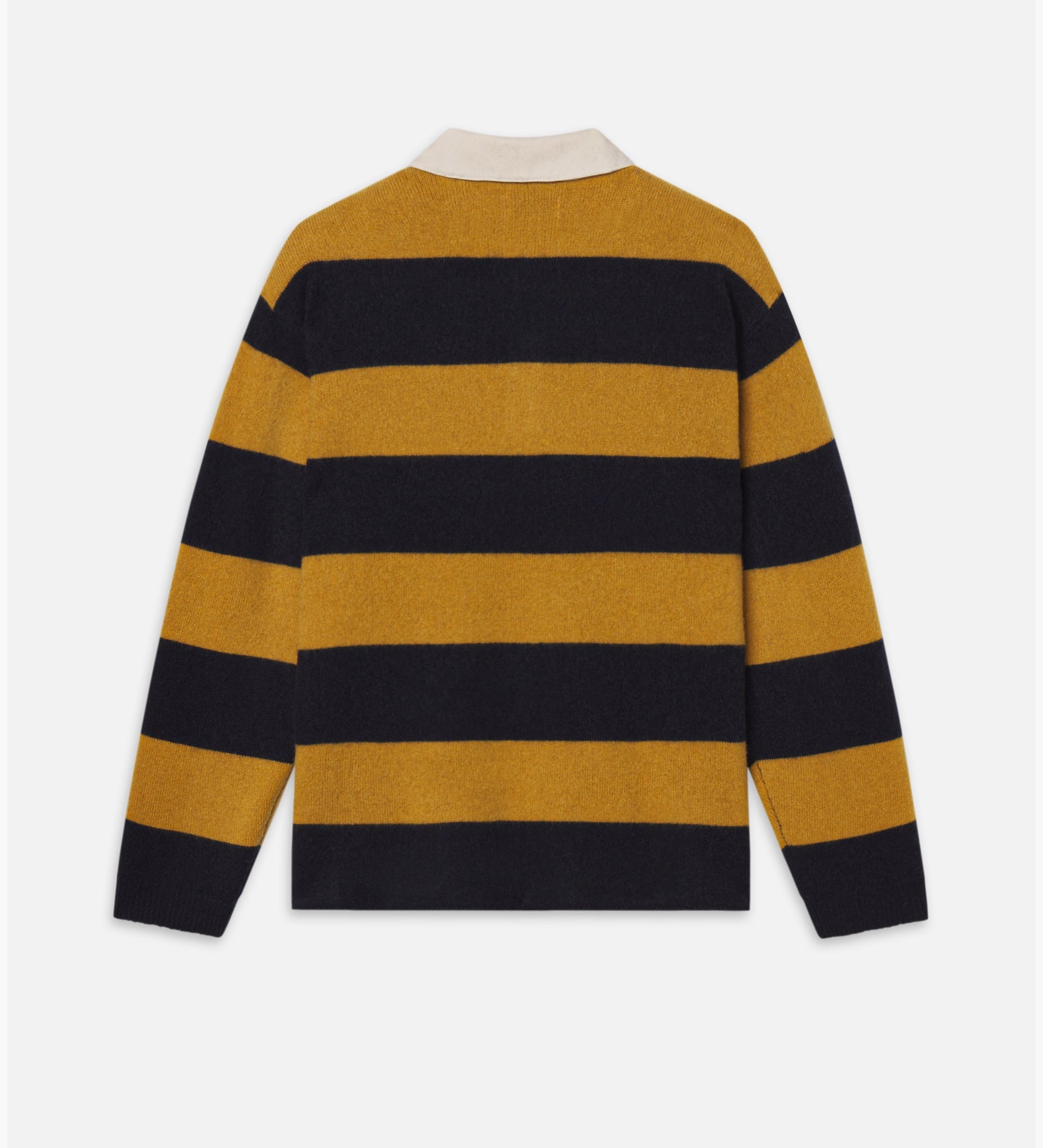 FRAME - The Society Archive Rugby Polo Sweater -- Navy/Dark Yellow Stripe