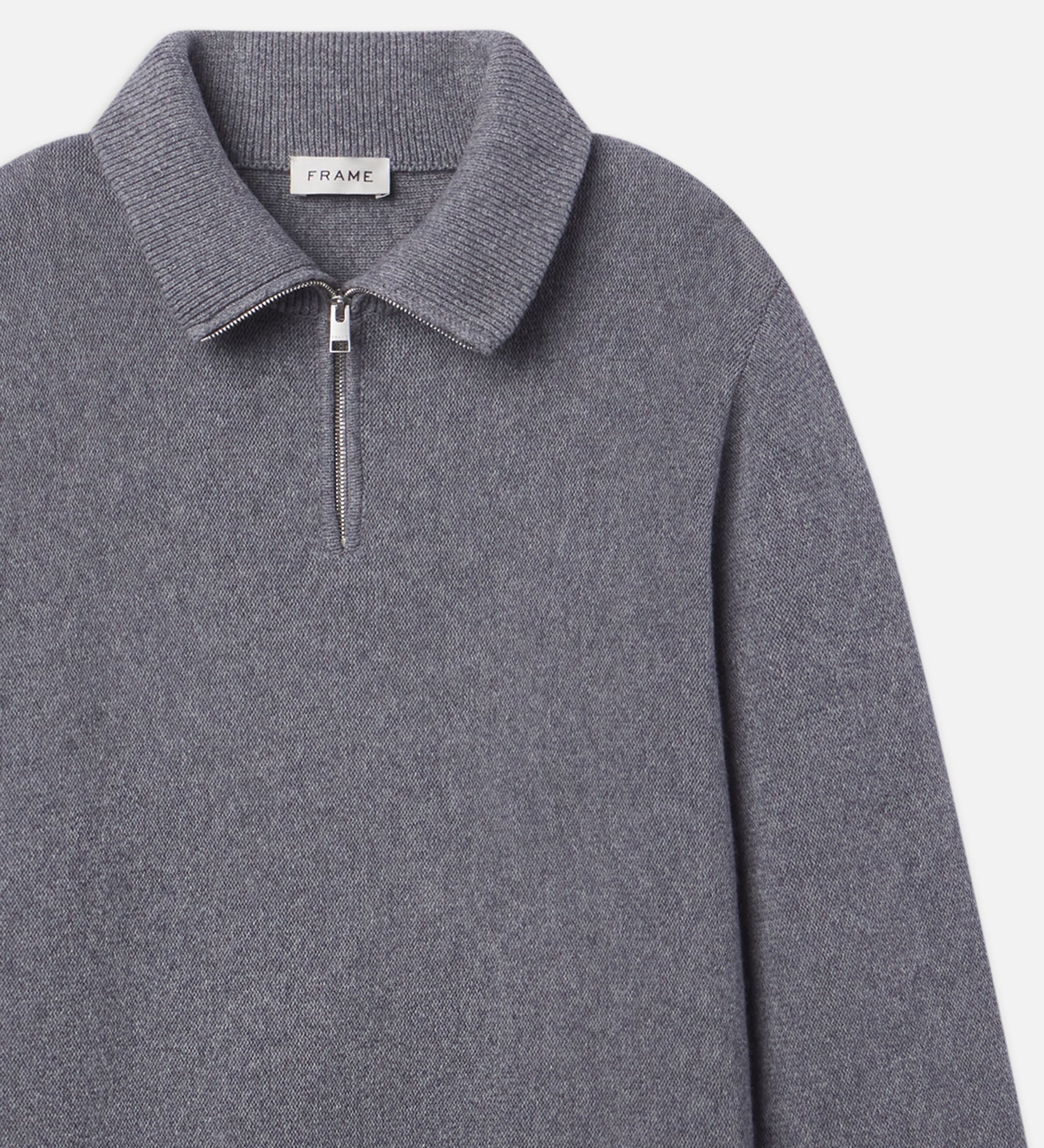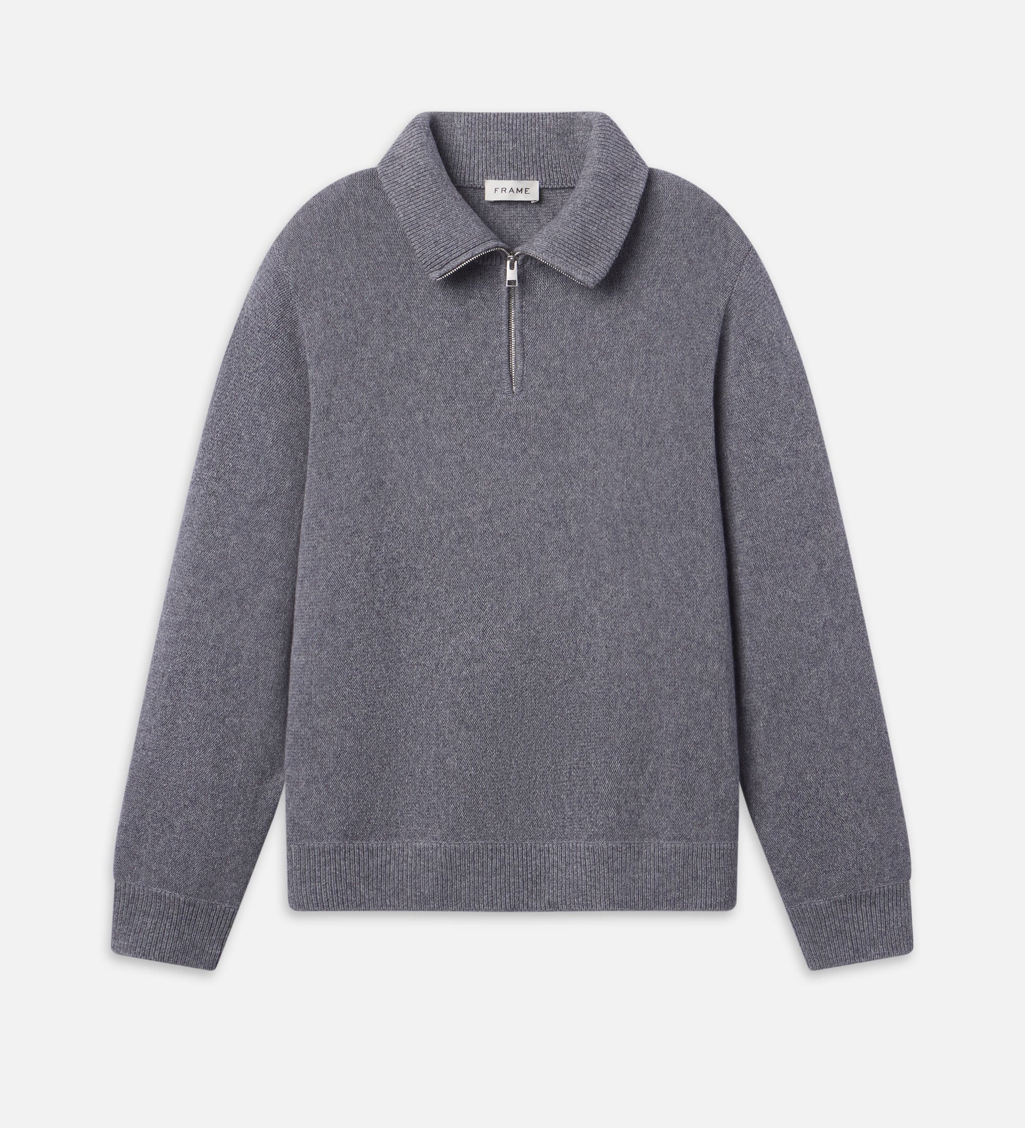FRAME - Zip Up Wool Sweater -- Grey Melange