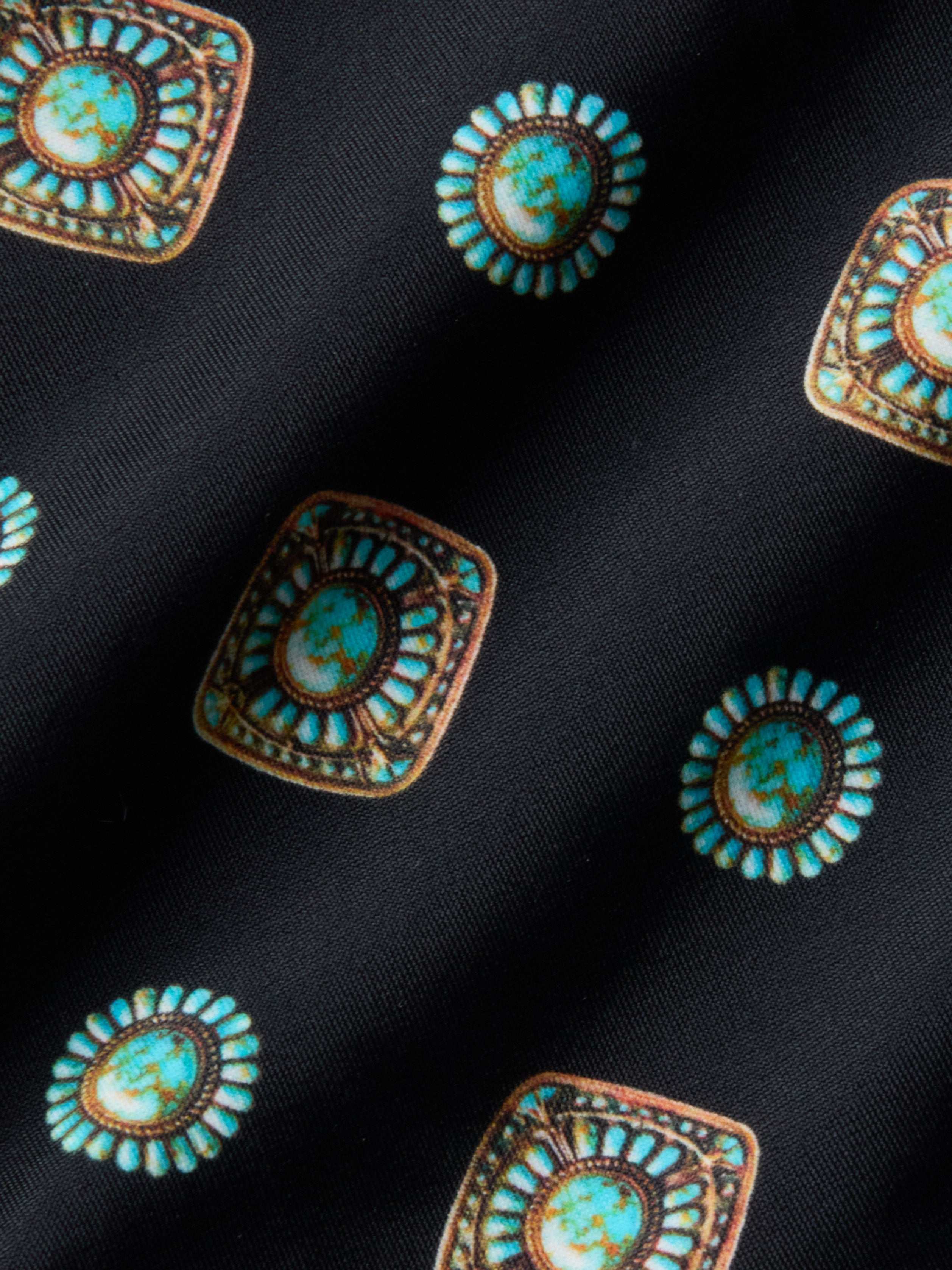 A sultry bikini bottom, designed with a subtle scoop front and high-leg cut. Now in a geometric medallion print.