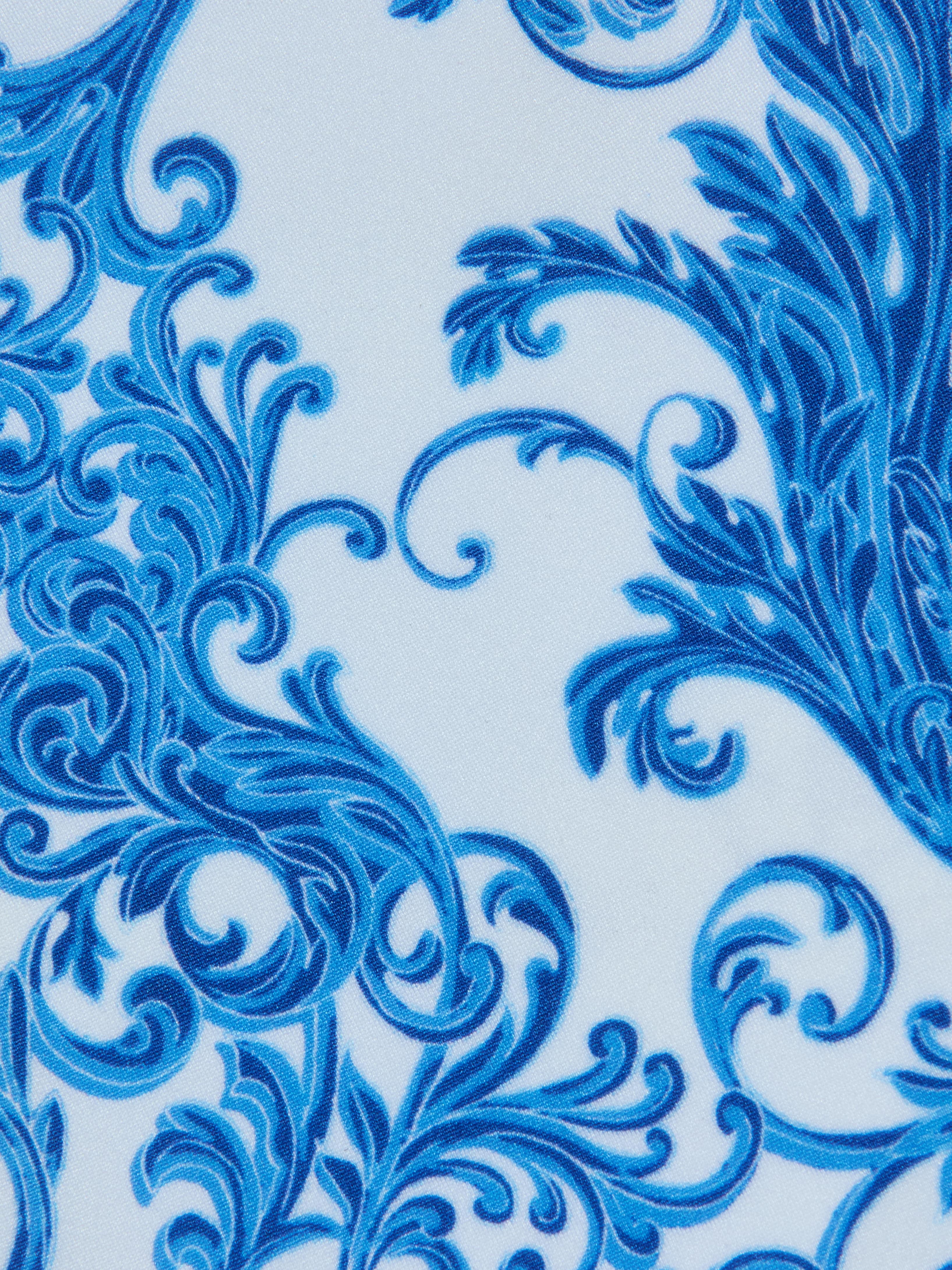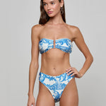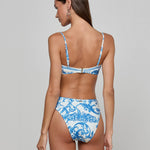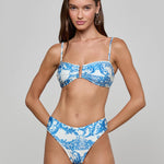 Designed with fully removable straps, the Krysta bikini top can be worn with a secure or sexy fit. U-bar hardware adds flattering shape and definition. Now back in a blue baroque print.