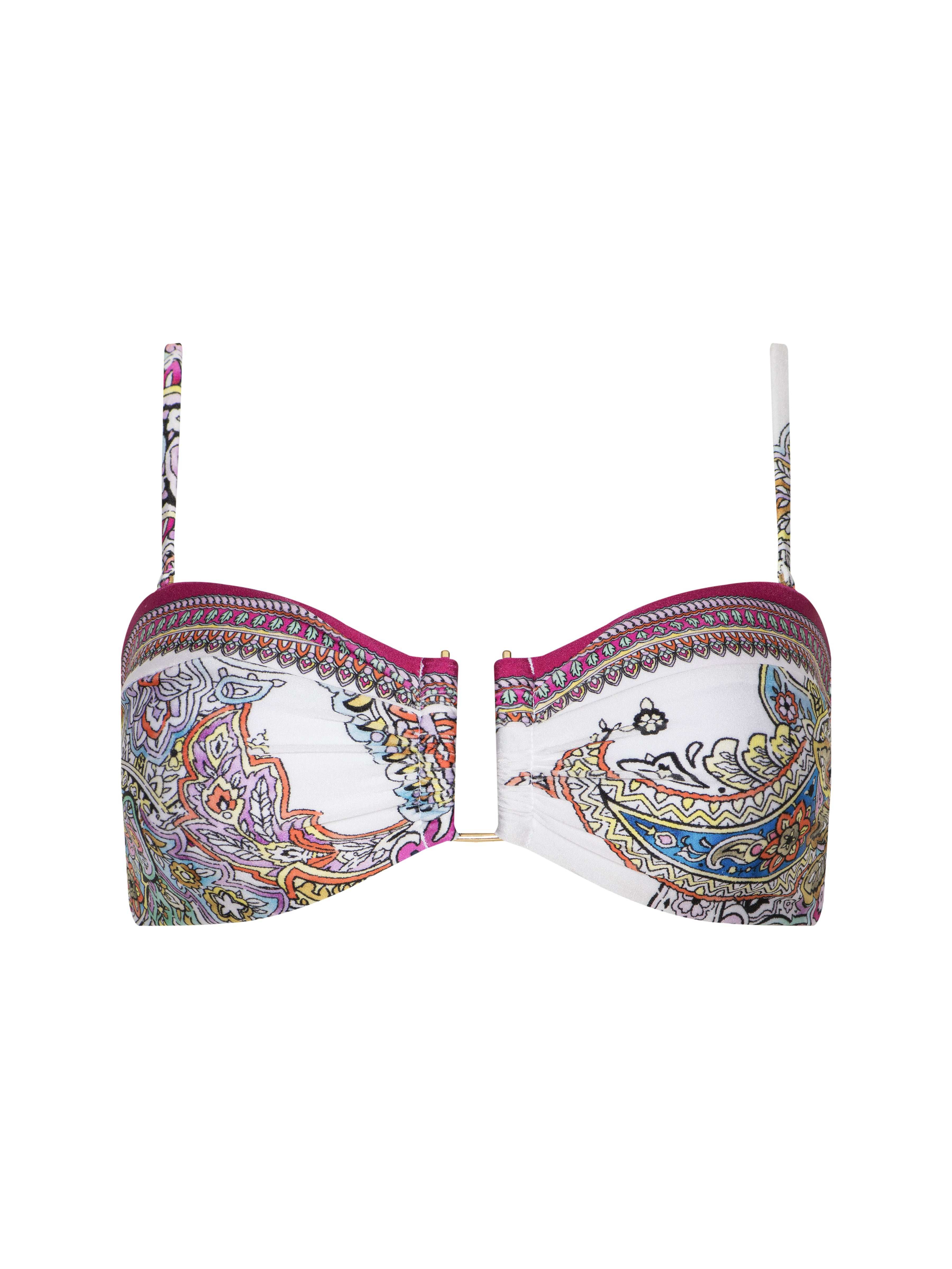 Designed with fully removable straps, the Krysta bikini top can be worn with straps for a secure fit or without for a sexy bandeau option. Now in paisley.