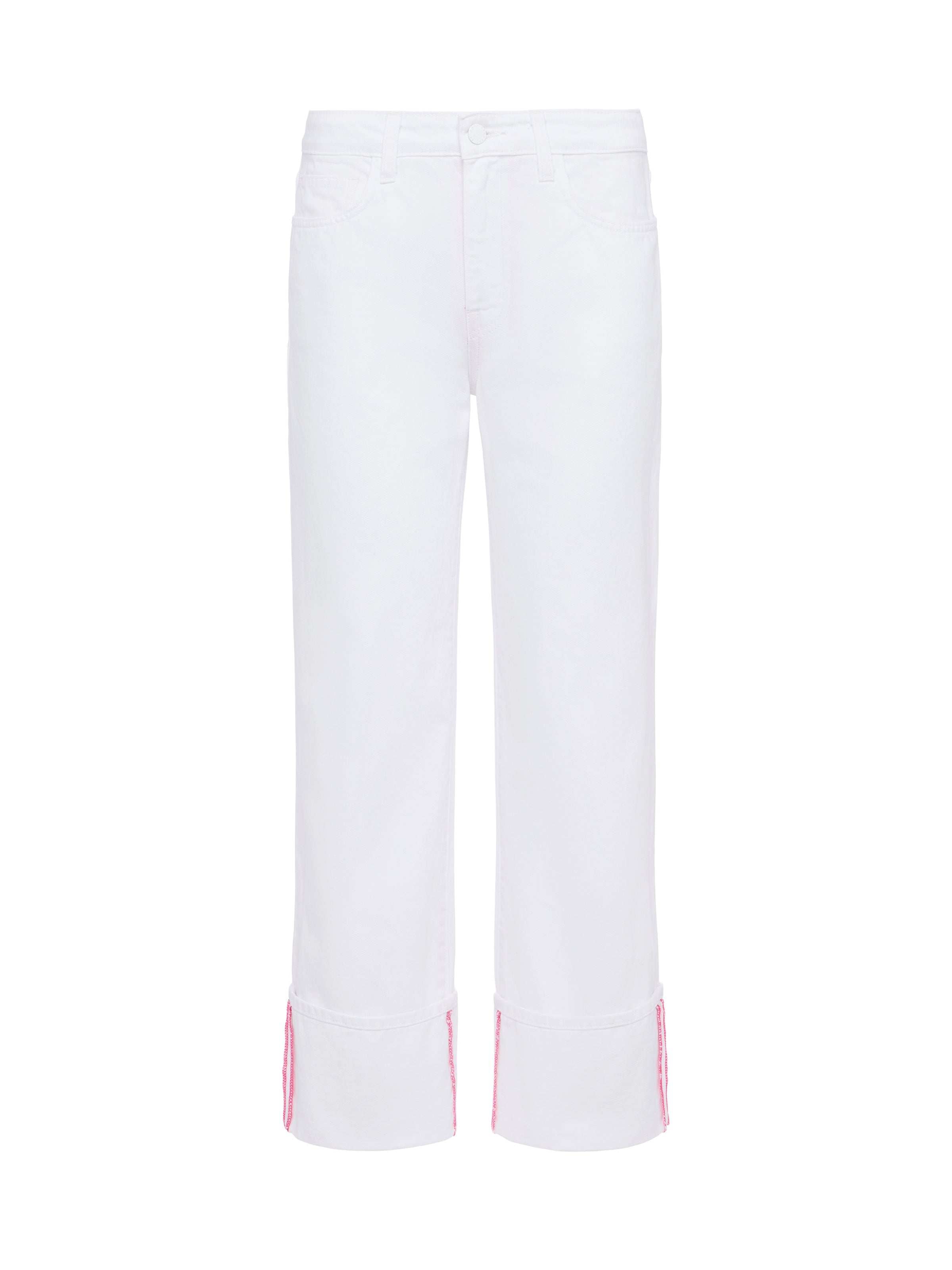 A vintage feel meets a modern cut in the cropped Leighton jean. A cuffed hem and contrast topstitching add personality to this relaxed straight-leg, now in a white.
