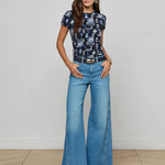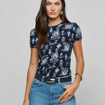 In a soft, supple fabrication and slim cut, Ressi is our most flattering short sleeve tee. This L'AGENCE favorite is back in a bold porcelain print.