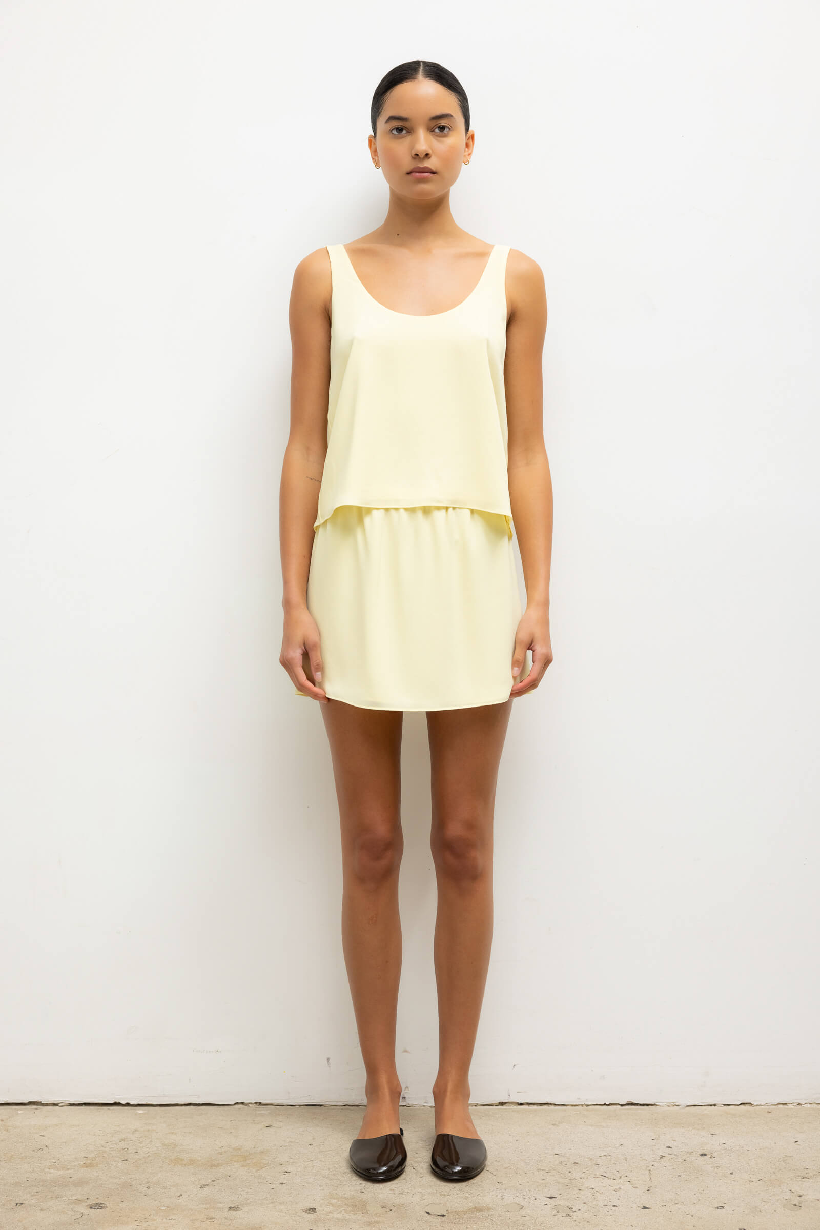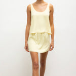 Cut in our Japanese-crafted Ari Light Woven Crepe, The Ari Scoop Tank features a wide scoop neckline, medium width straps, and a perfectly cropped length. Make it a matching set with any Ari bottom.