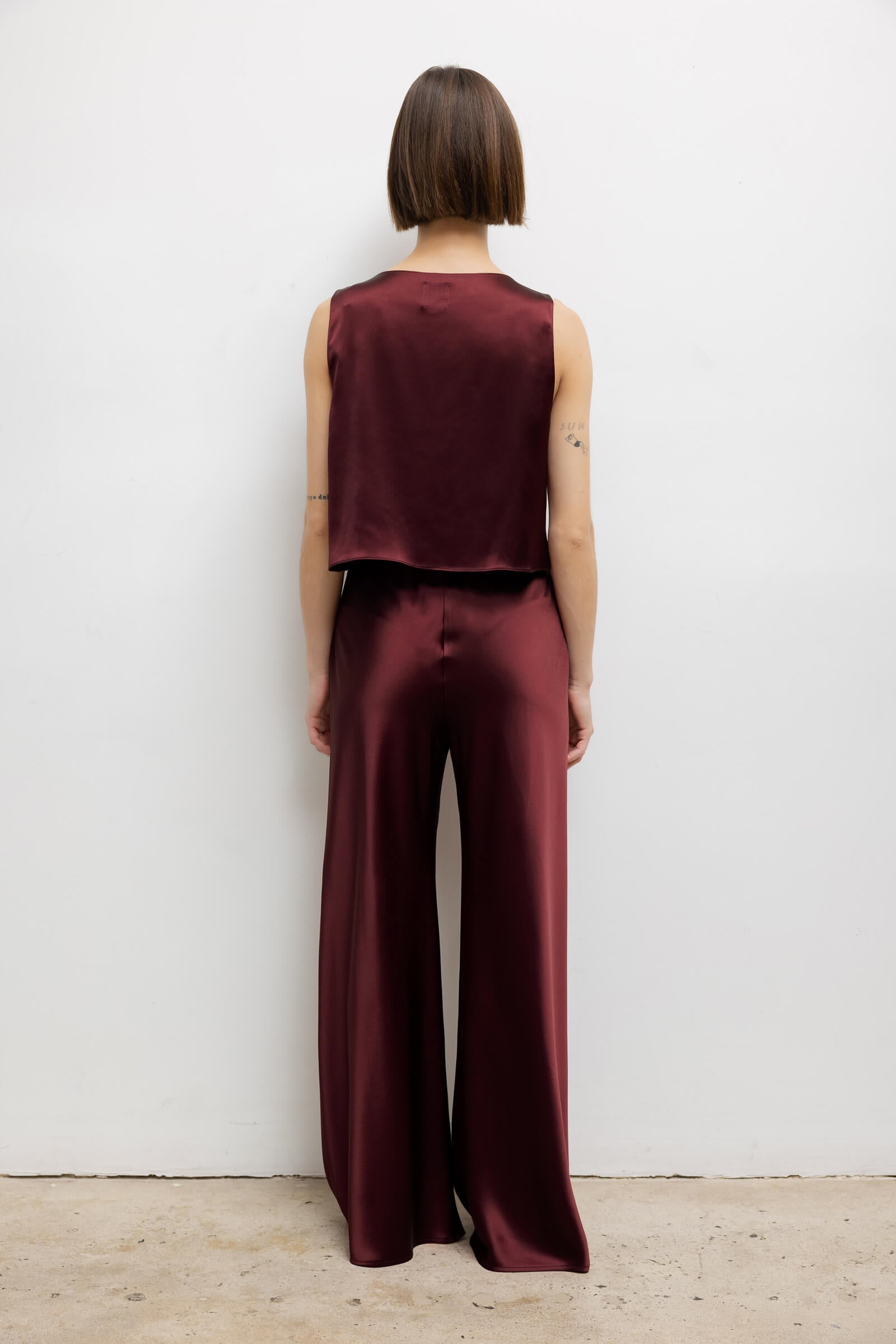 Cut in our best-selling Japanese-crafted Barb Satin, The Barb Bias Pant is an easy, pull-on style pant that perfectly drapes to flatter the form. Make it a matching set with any Barb top or pare it down with The Pointelle in monochromatic Dark Berry.