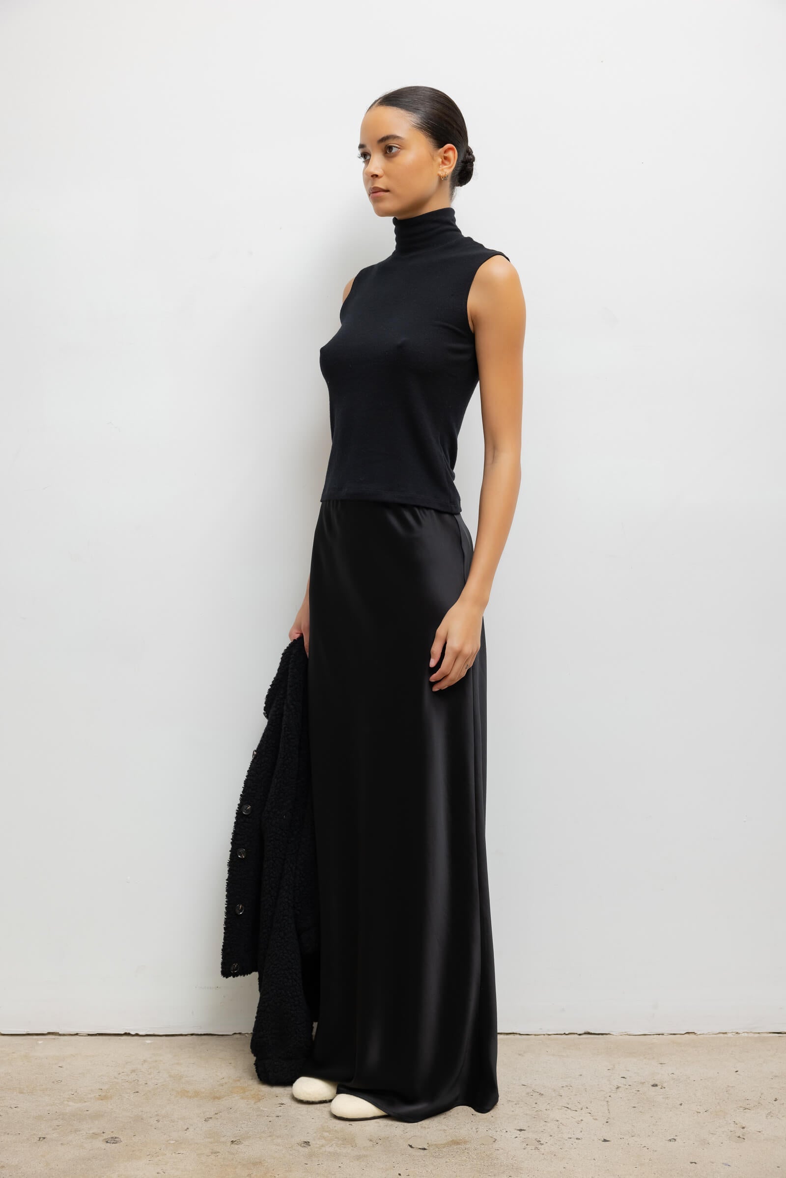 Cut in our Japanese-crafted Barb Satin, The Barb Bias Skirt is a full length maxi that perfectly drapes to flatter the form. Make it a matching set with any Barb top or pare it down with any cotton Classic.