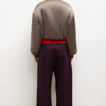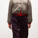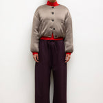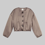 Cut in our best-selling, Japanese-crafted Barb Satin, The Barb Bomber reimagines the classic utility bomber. This collarless crop jacket features a soft poly faille, button front closure and shapely full length sleeves. Make it a matching set with any Barb style.
