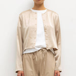 Cut in our best-selling, Japanese-crafted Barb Satin, the Barb Crew Cardigan features tonal button front closure, crew neckline and full length sleeves. Make it a matching set with our Barb Crop Sleeveless Crew and Barb Wide Leg Pant.