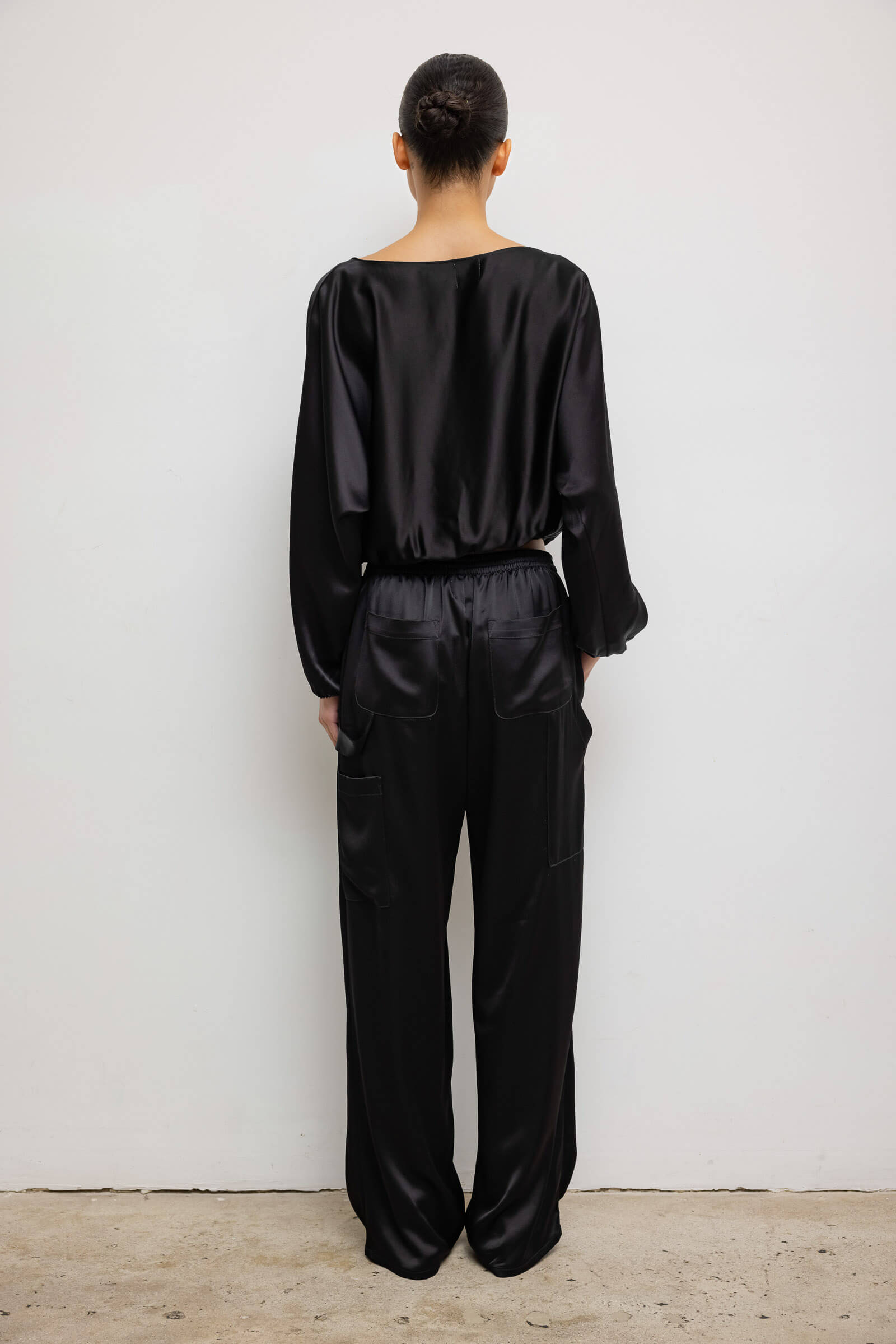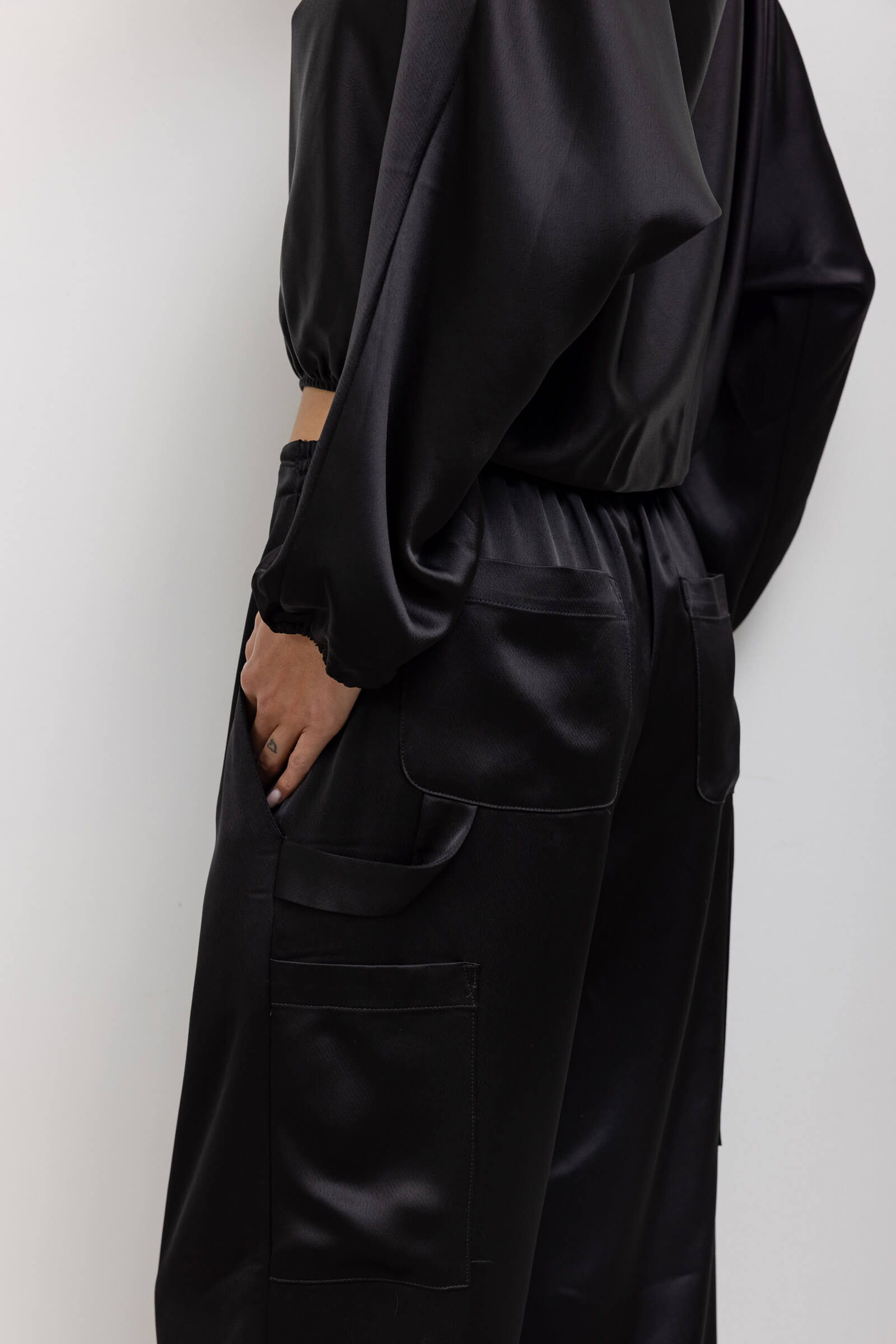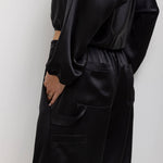 Cut in our Japanese-crafted Barb Satin, The Barb Painter Pant is a classic utility style trouser, featuring an elastic waistband, side patch pockets, and a hammer loop.